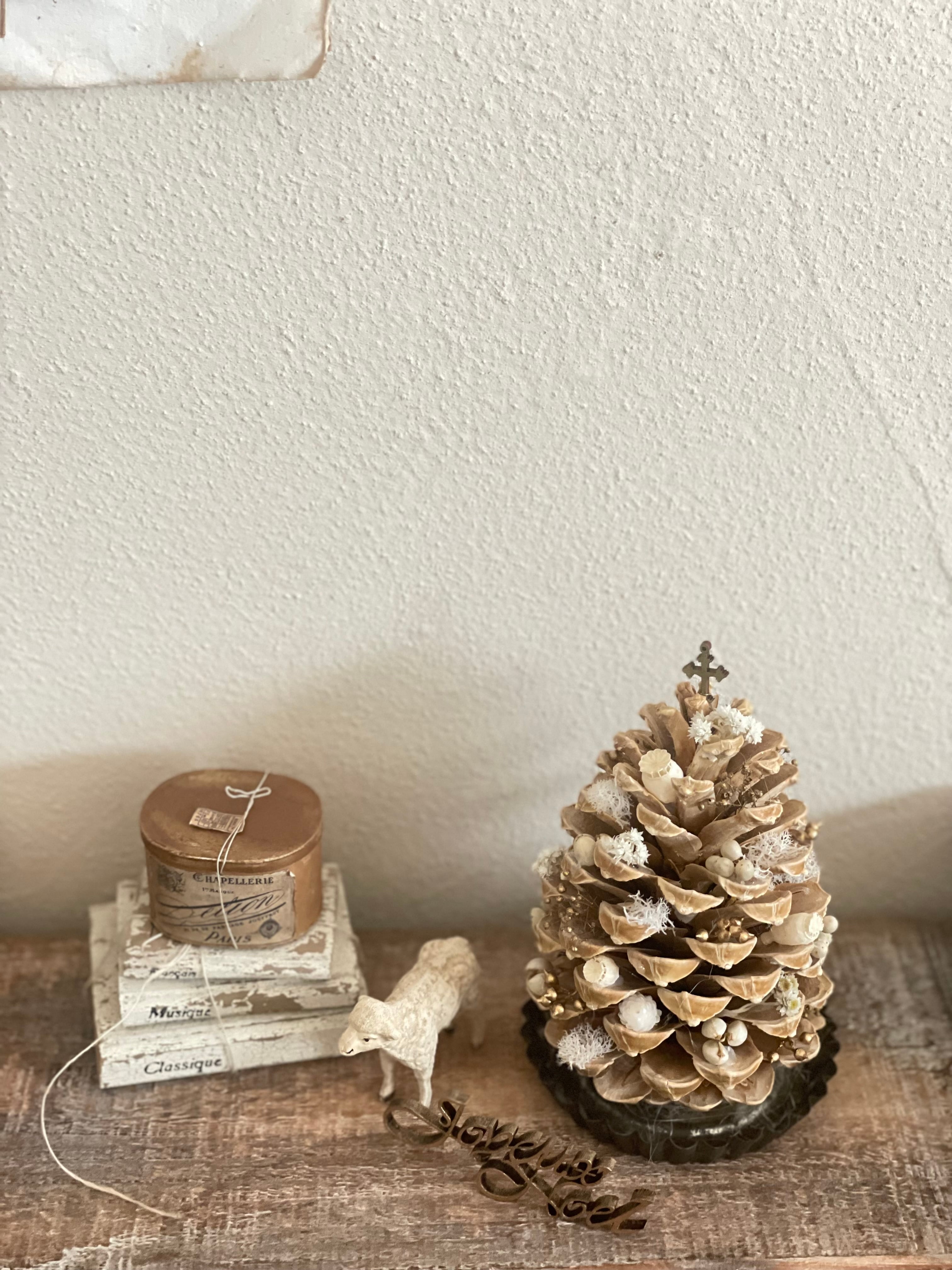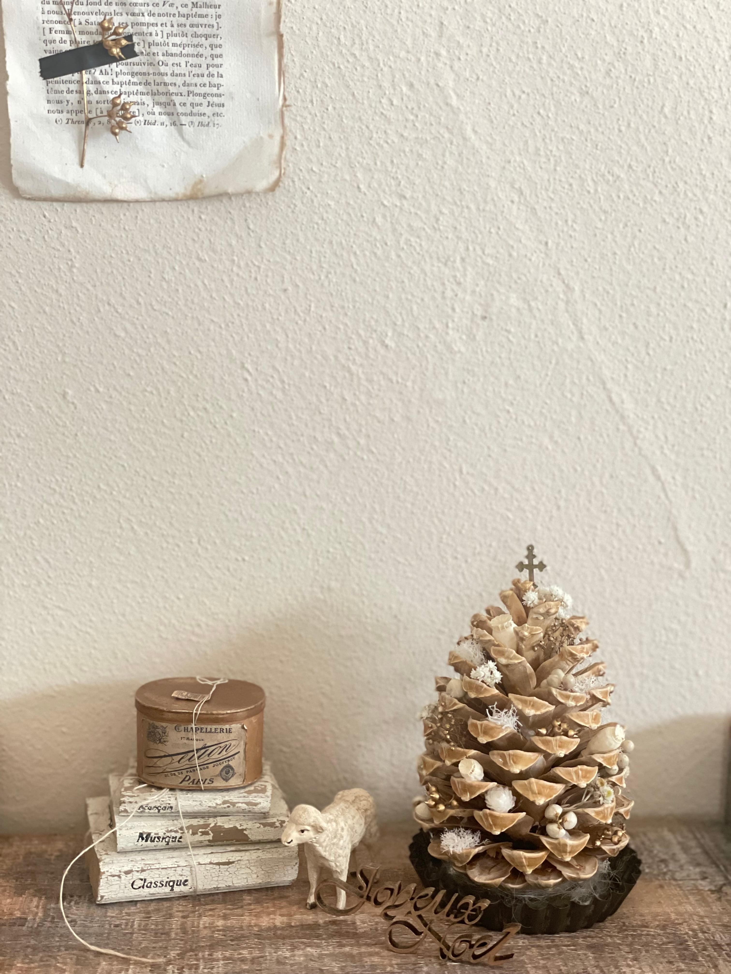 大きな松かさをツリーに見立てて