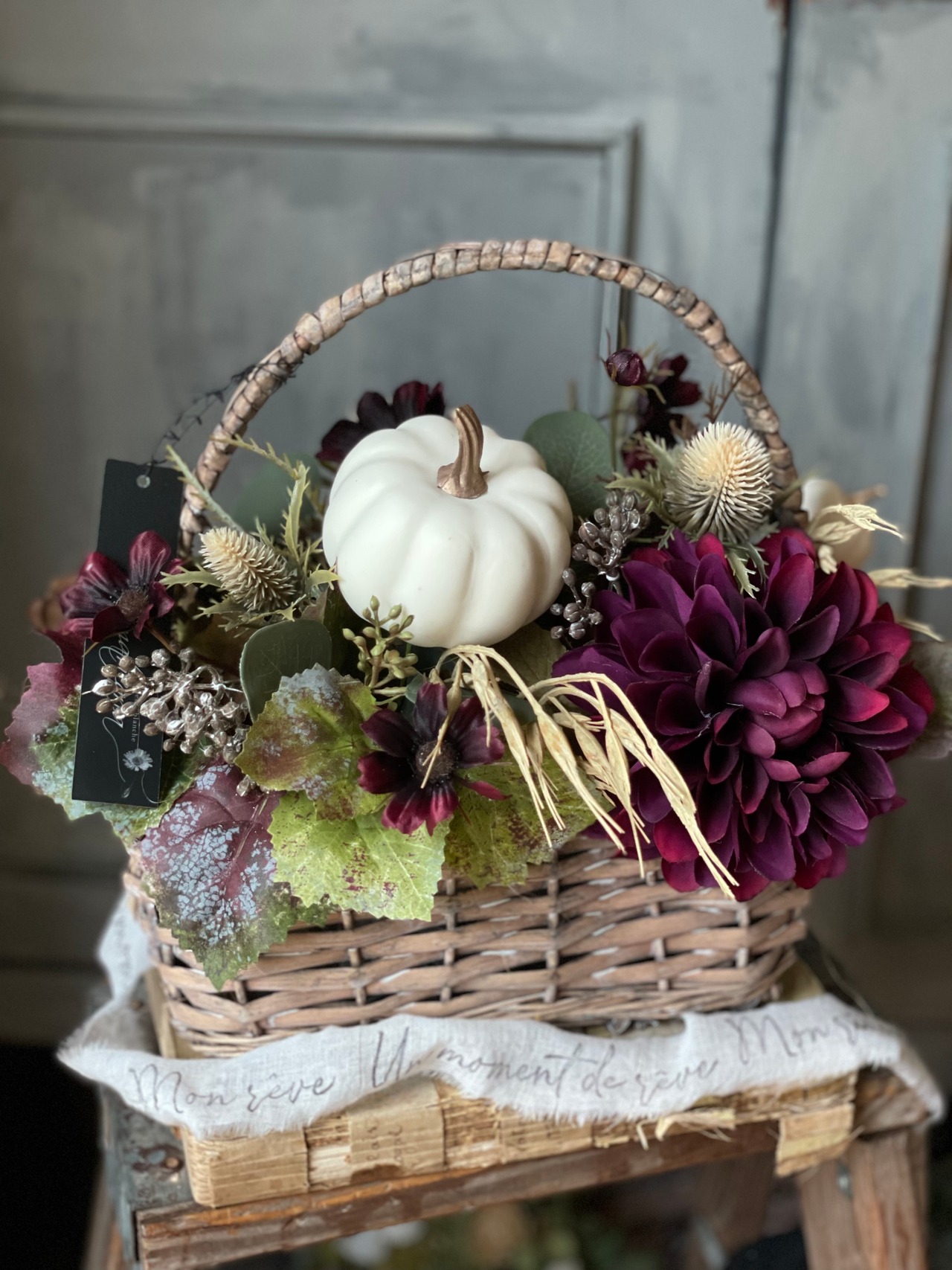 シャビーなパニエに秋の実りをテーマに