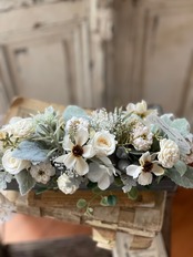 コスモスとバラ&ハーブの寄せ植え風アレンジ