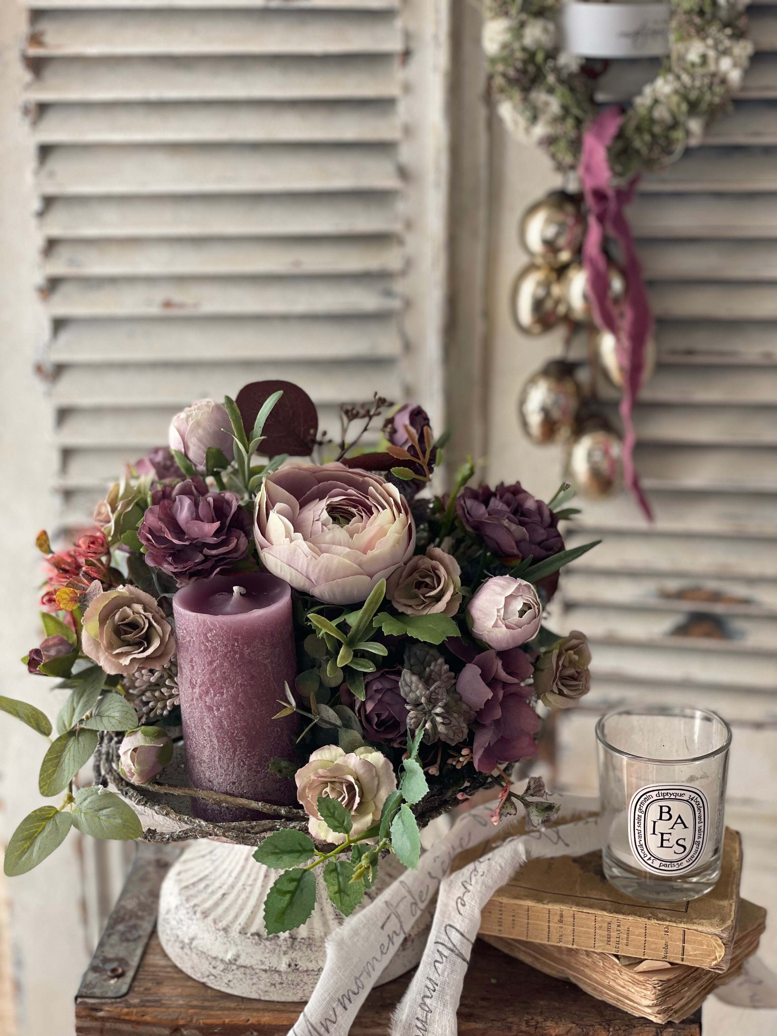 モーヴカラーコンポートキャンドルアレンジ#5