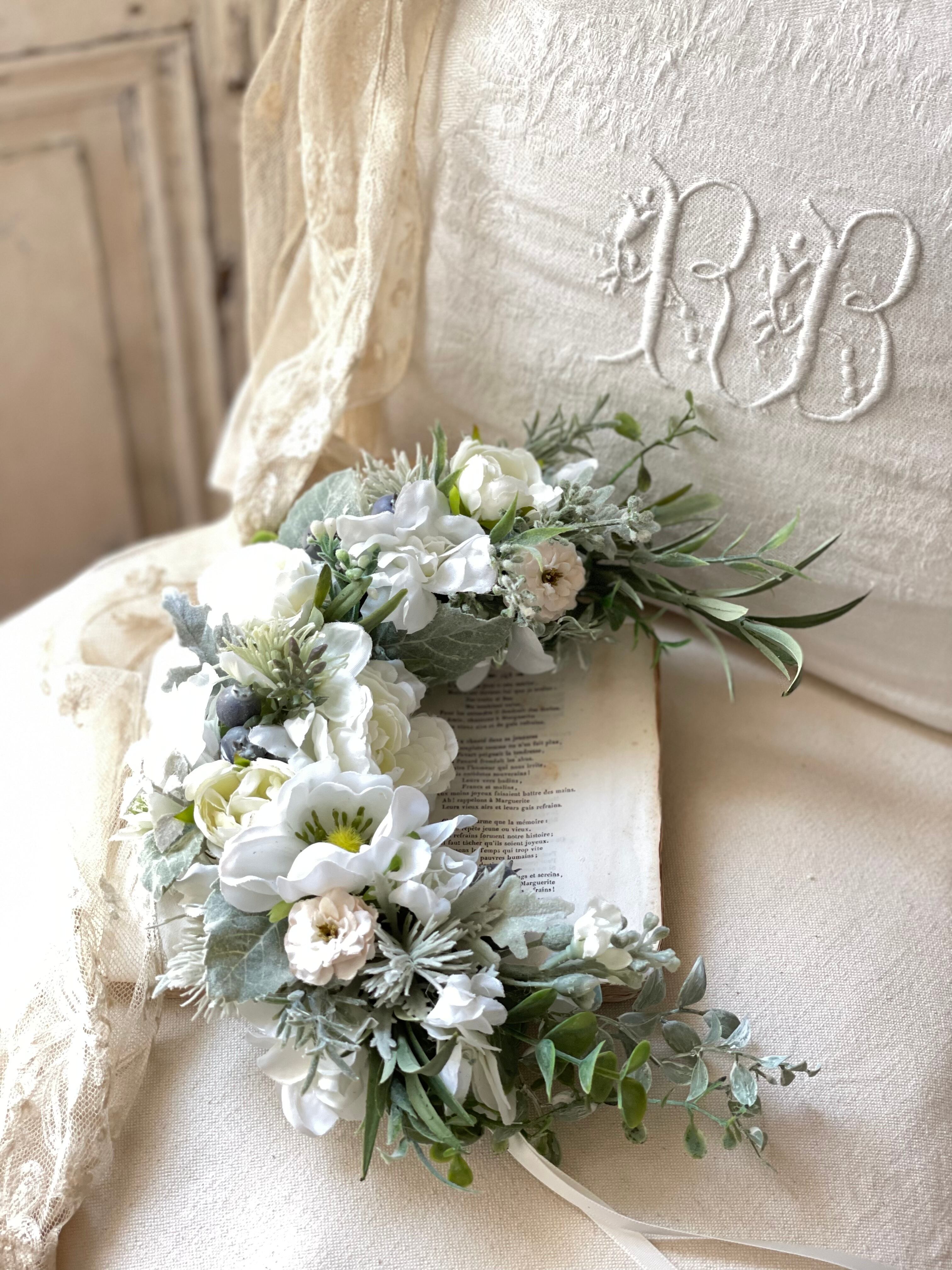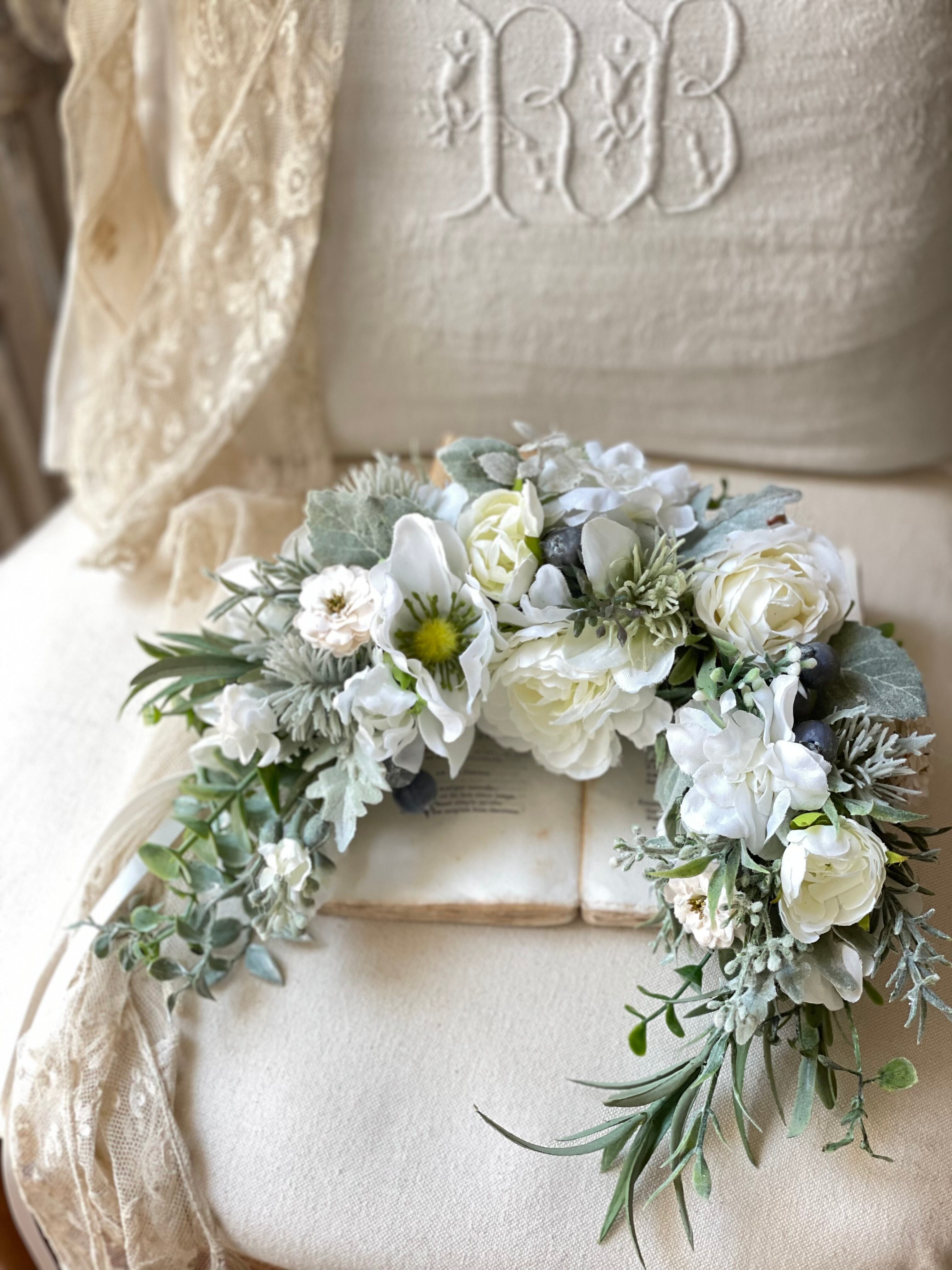 シルバーリーフとバラ&アネモネの欠片のリース#8