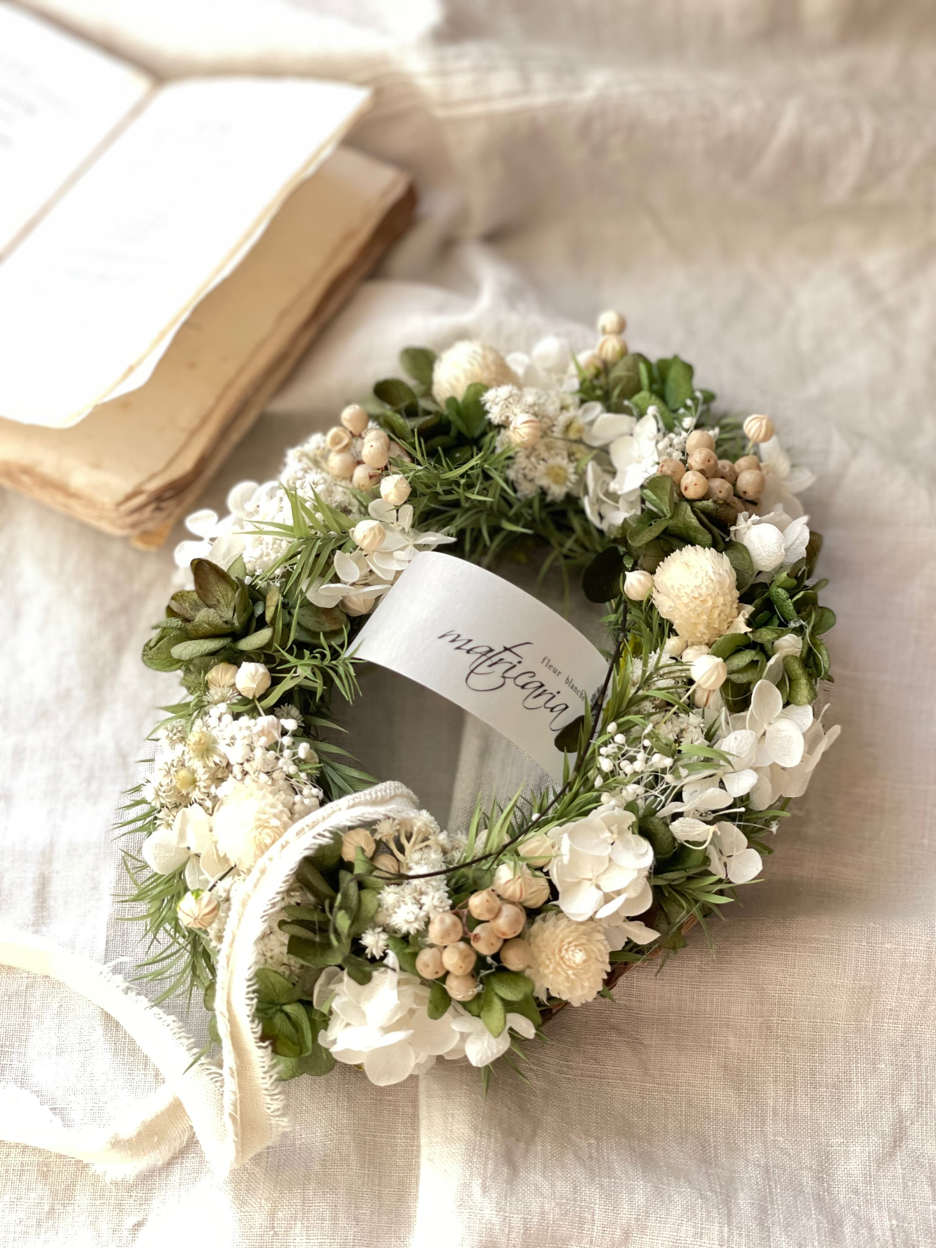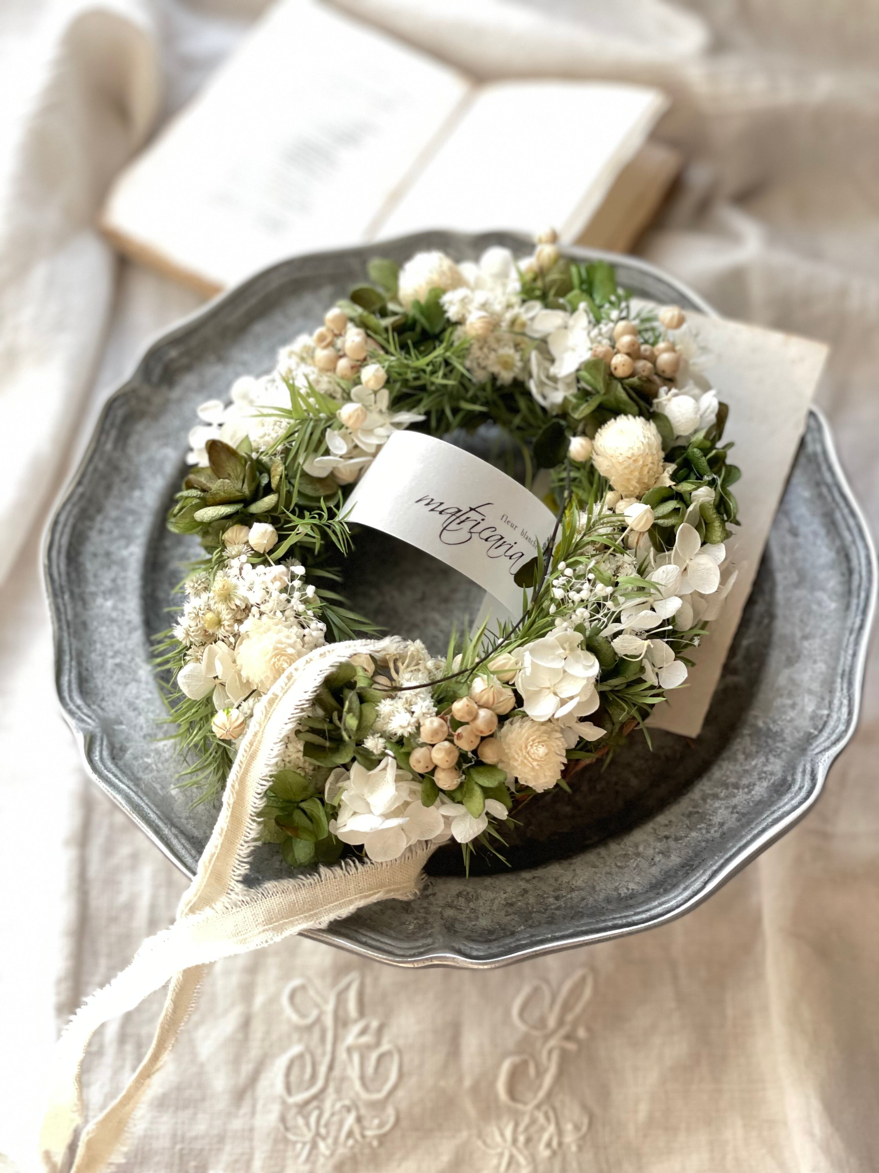 ティーツリーとあじさい&ハハコ草のオーバルリース