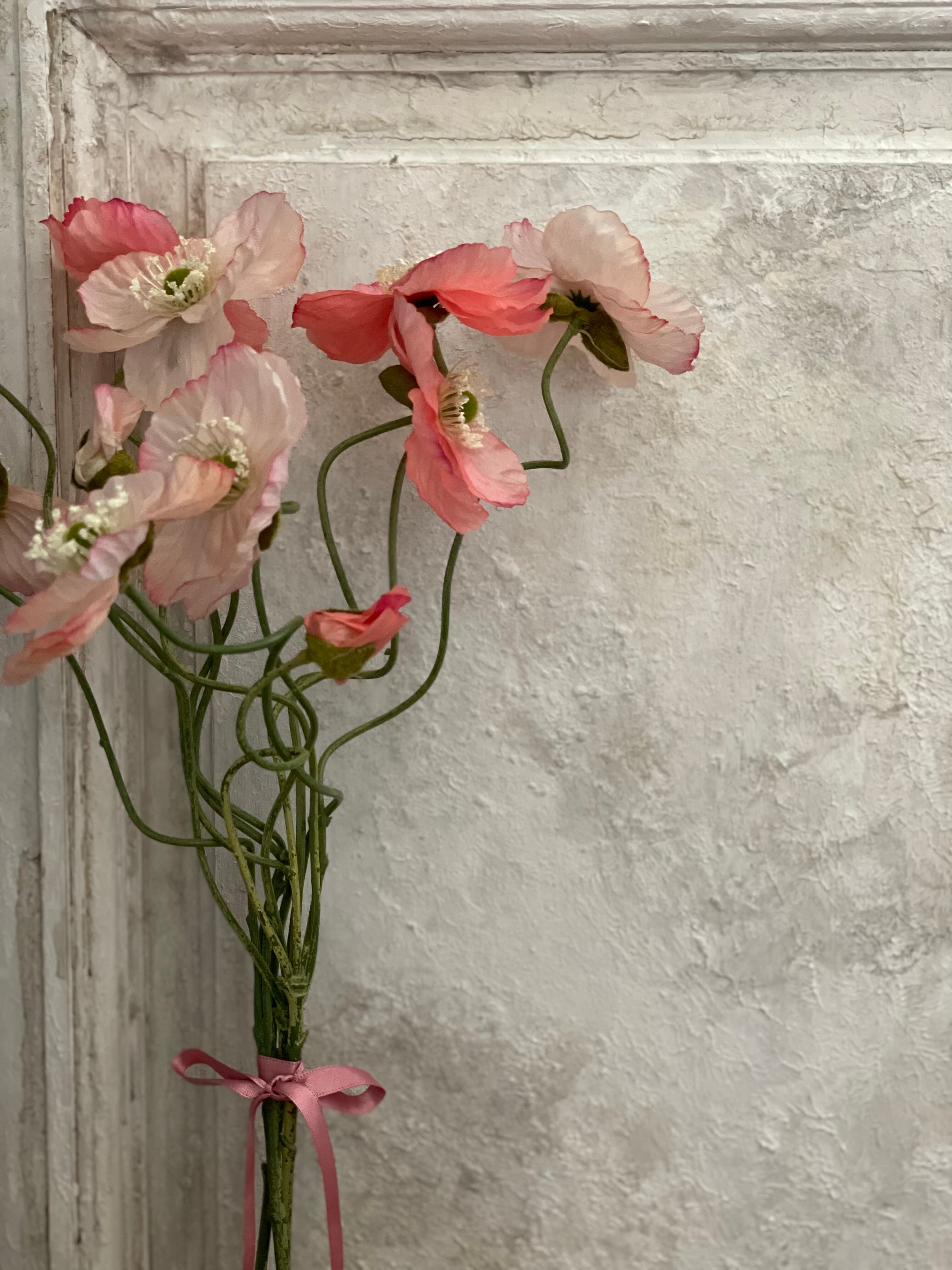 ピンク系のポピーを2種類3本束ねた