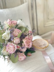 バラとラナンキュラス&ラベンダーの初夏のブーケ#2