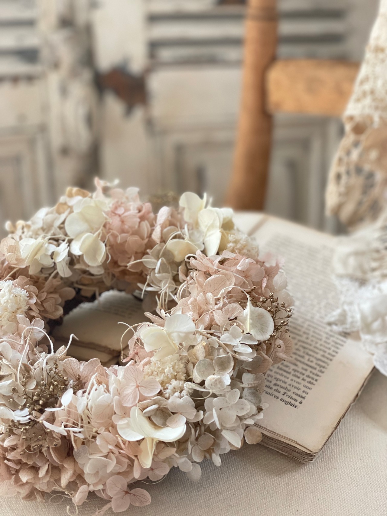 écru&beigeちょこっとgoldやさし色ふんわりリース