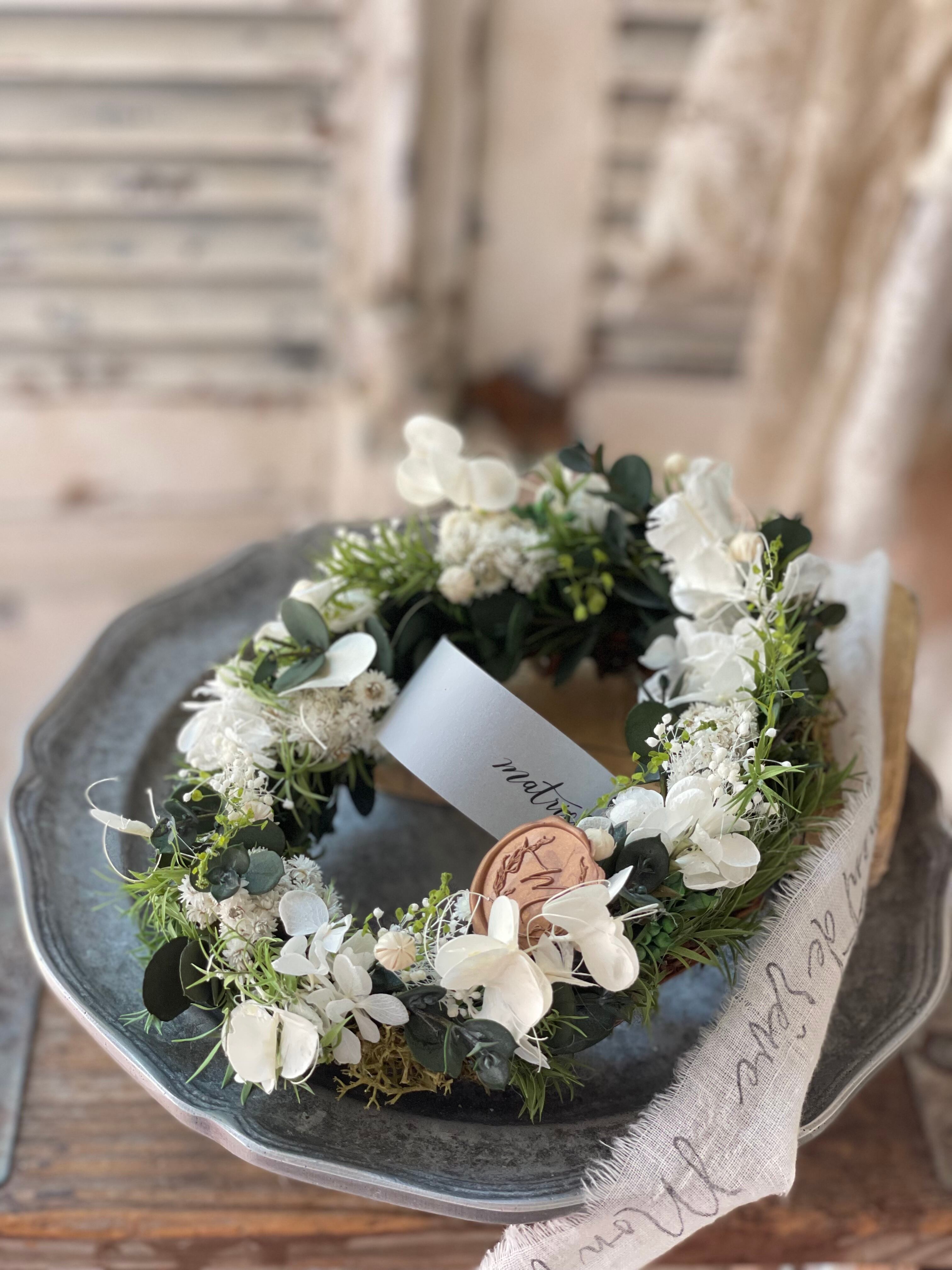 ナチュラルなオーバルリースを作りました。