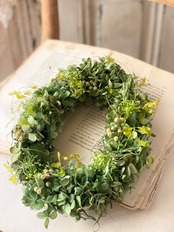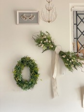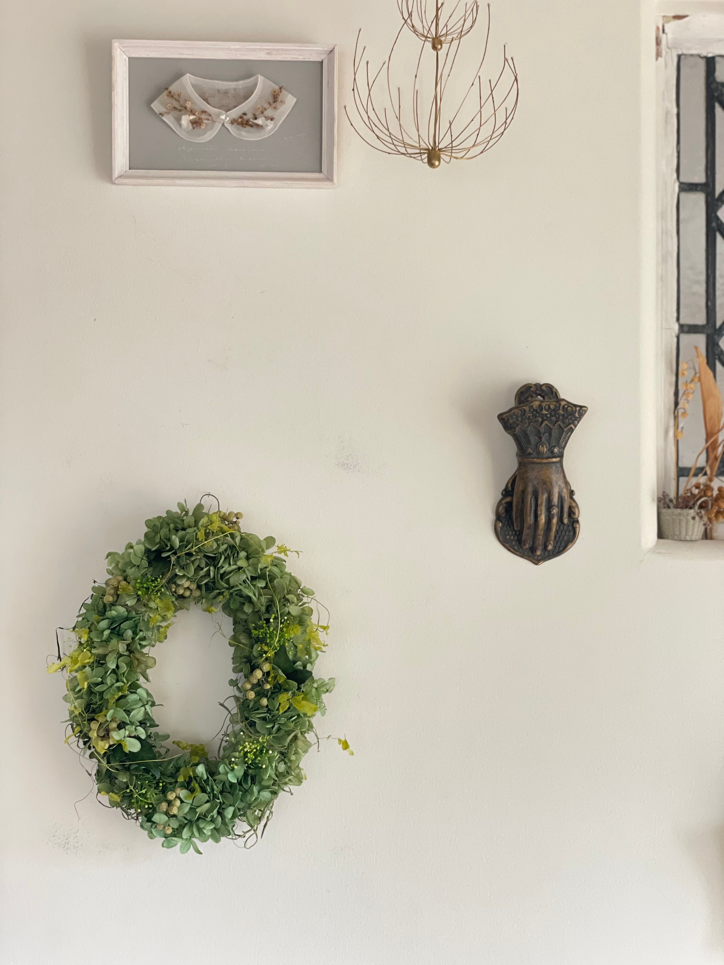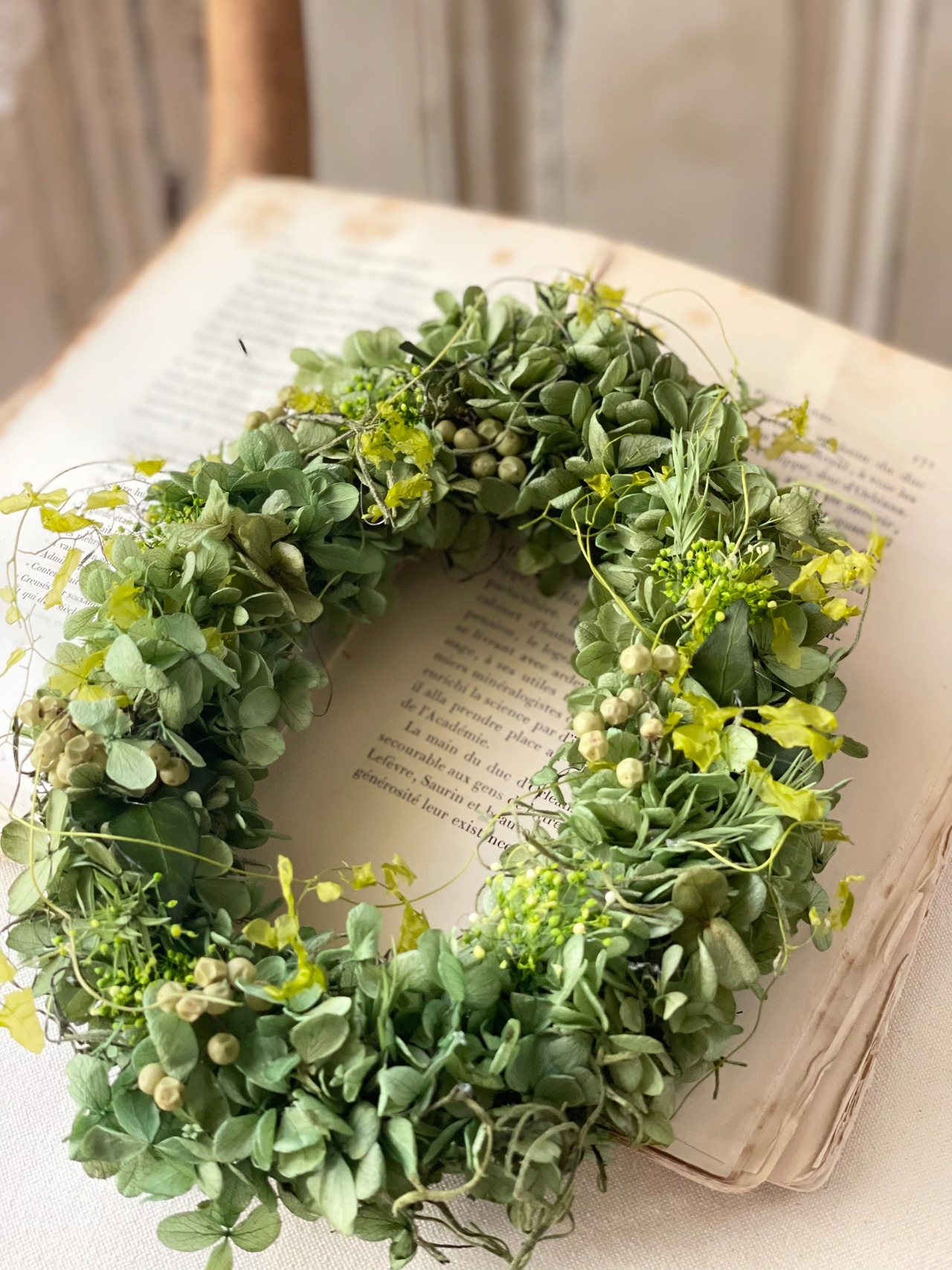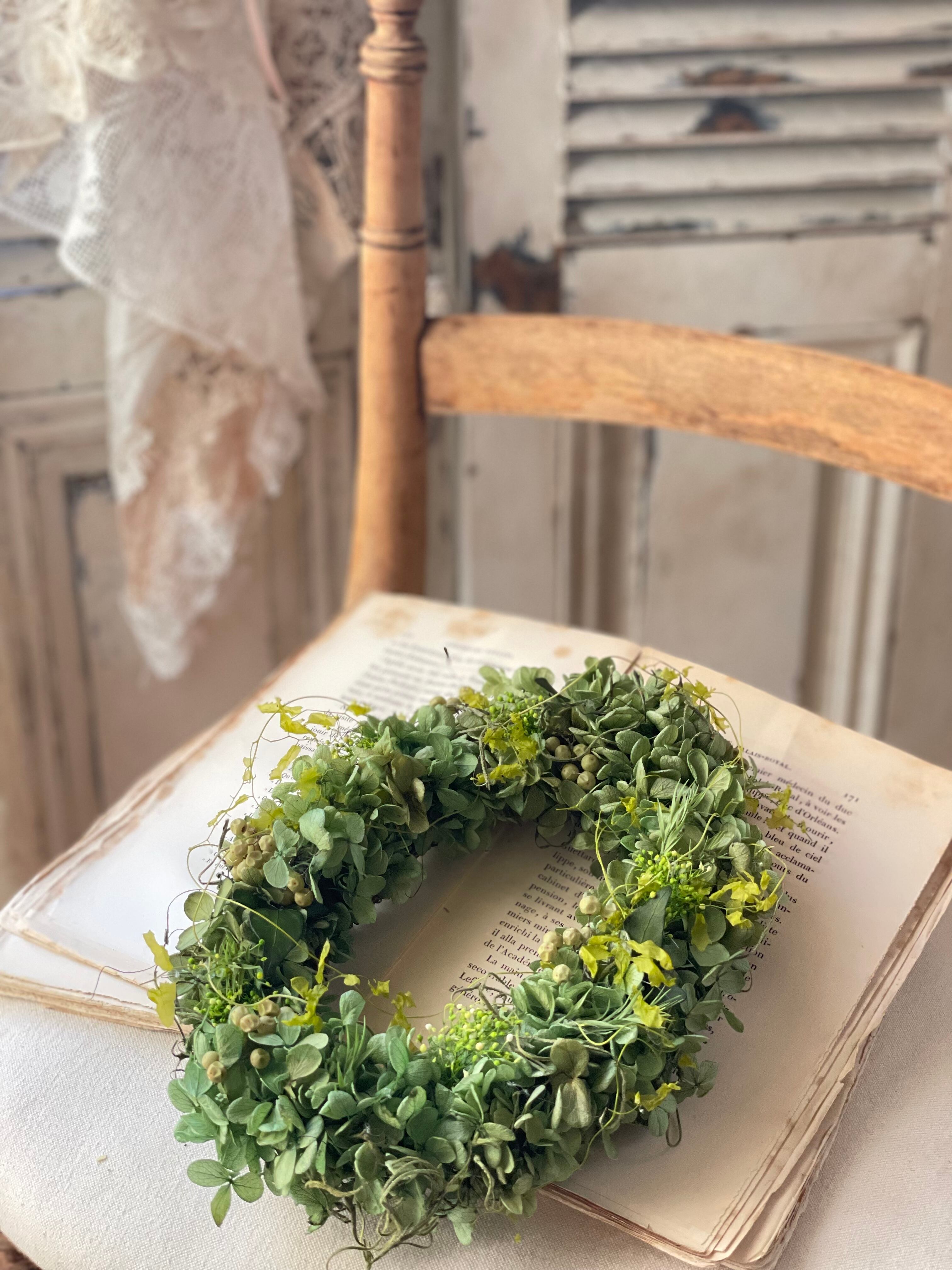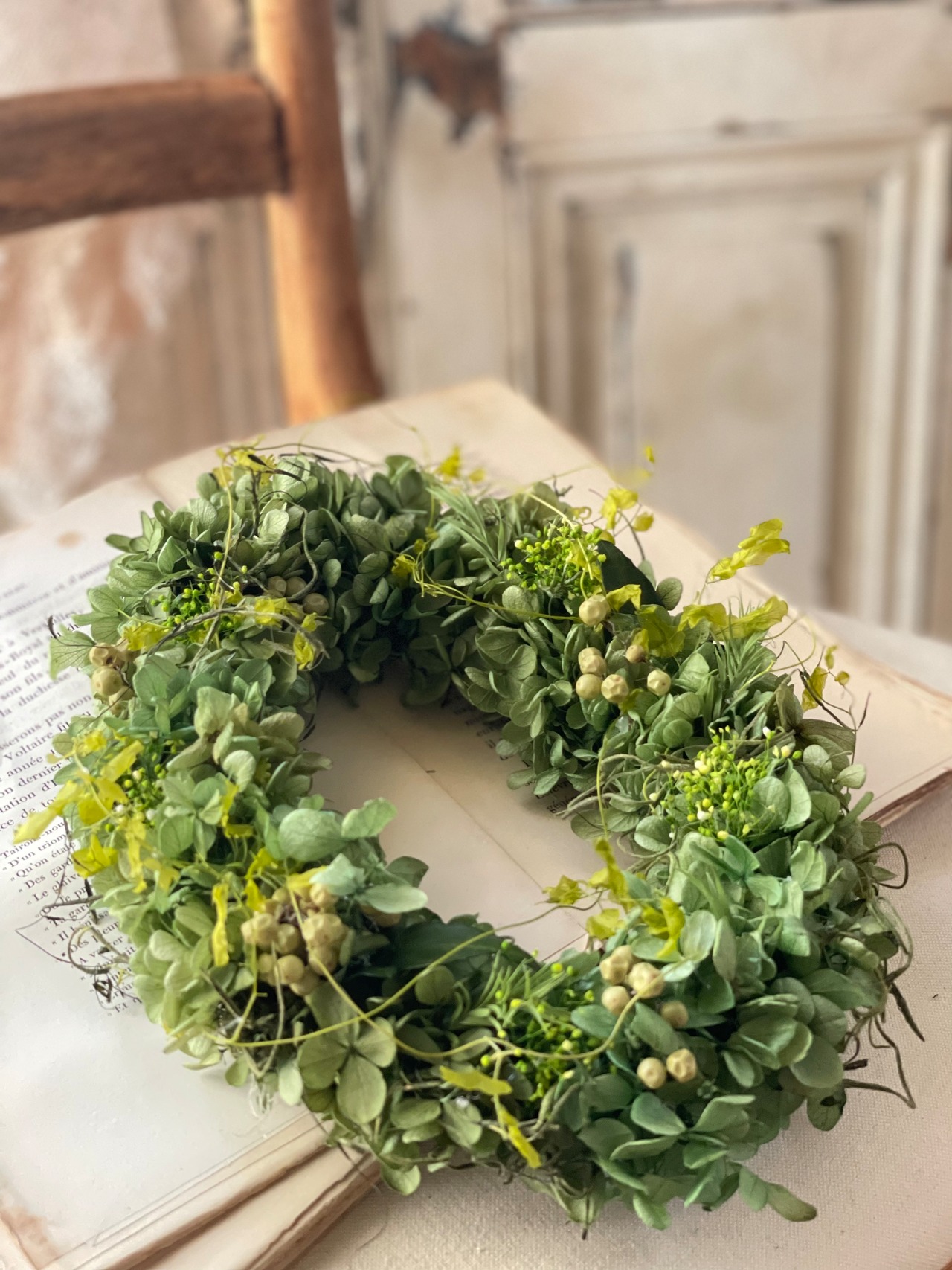 深いグリーンのあじさいをたっぷり使って仕上げた