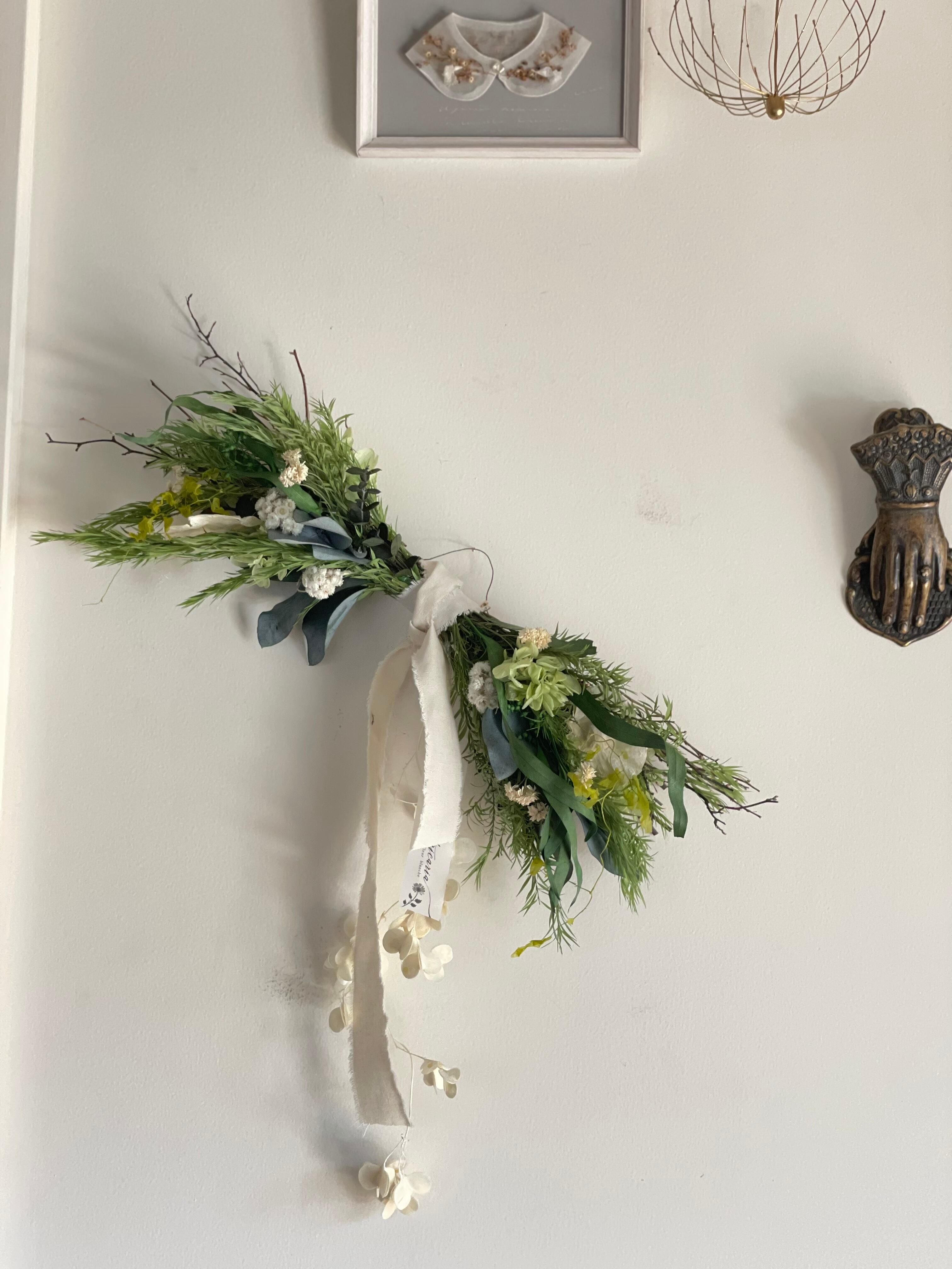 ティーツリーと小枝のグリーンナチュラルスワッグ