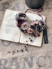 バラとあじさいのシックな欠片のリース〜大人の世界〜