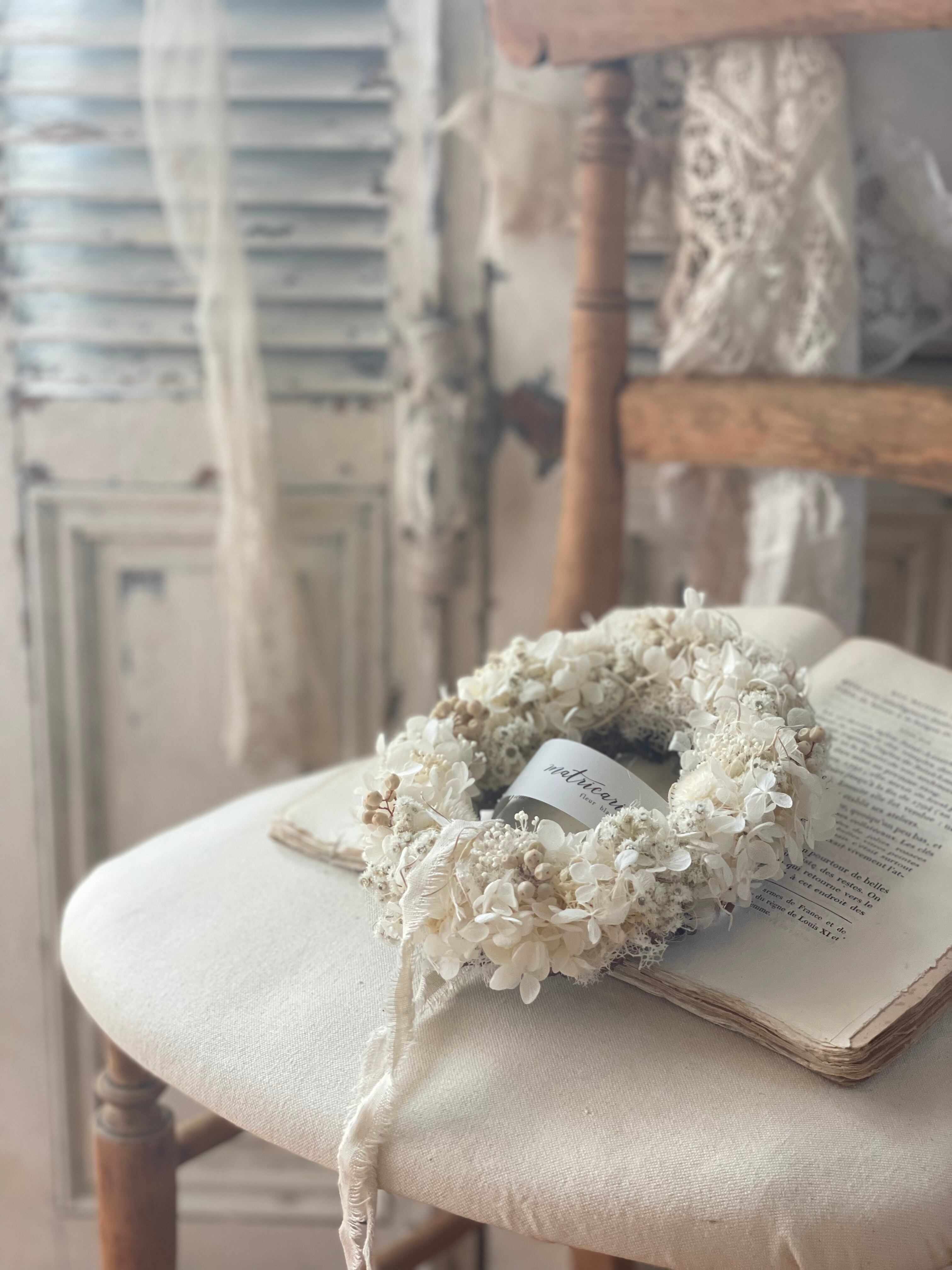 ハハコ草とあじさいのオーバルリース#12