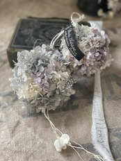 大の方はシルバーのかすみ草とミニヤマイモツルをアレンジ。