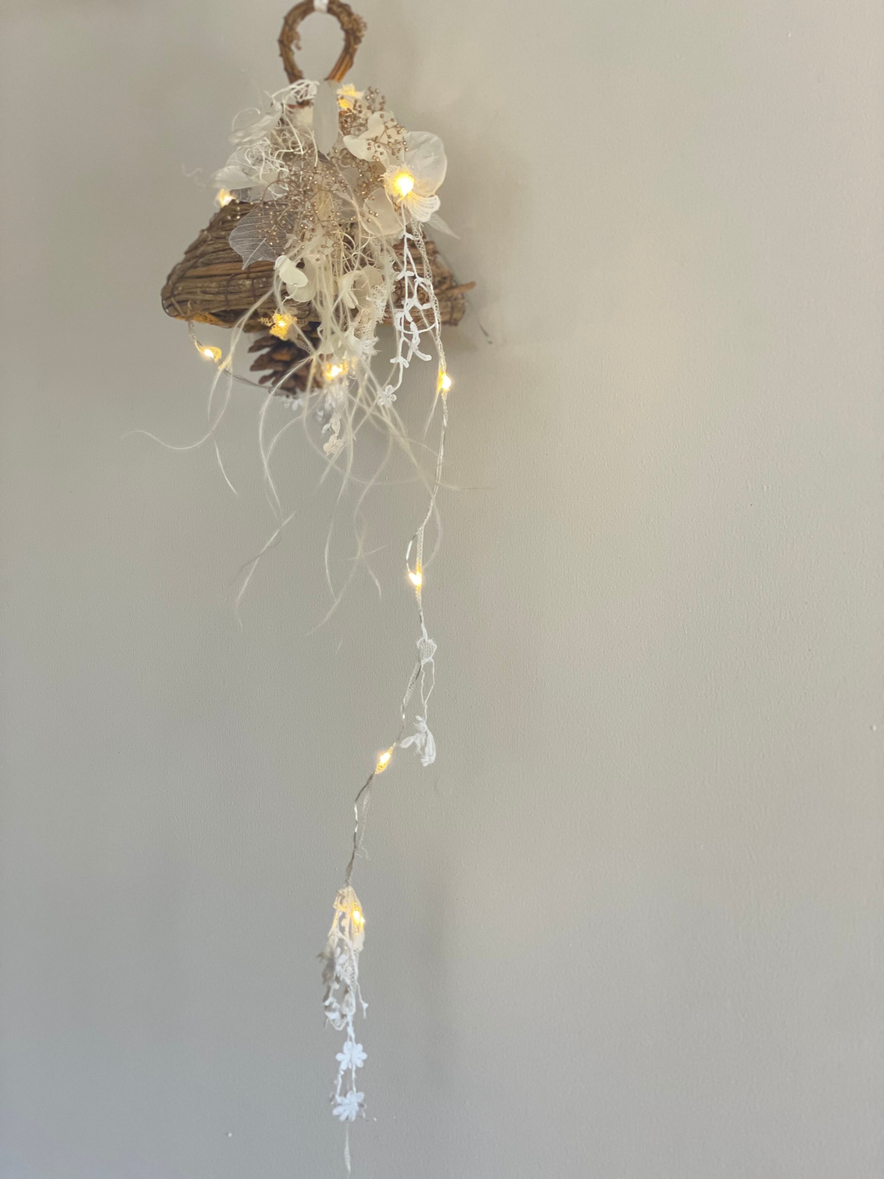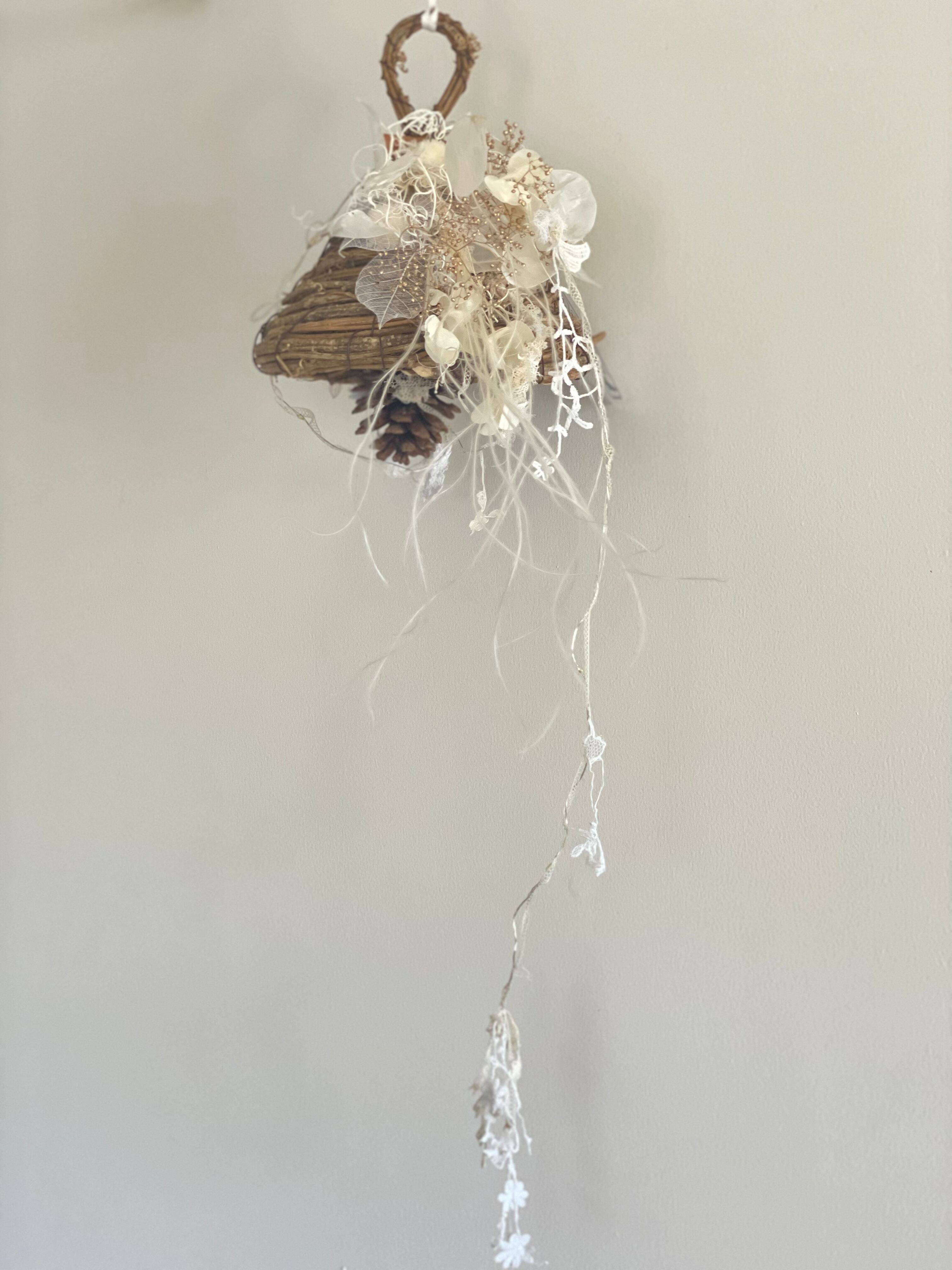 スイッチはパニエの内側にワイヤーで留めてますので電池の交換はワイヤーをカットして取り出してください。