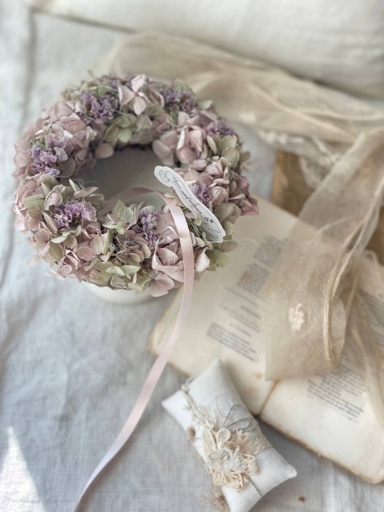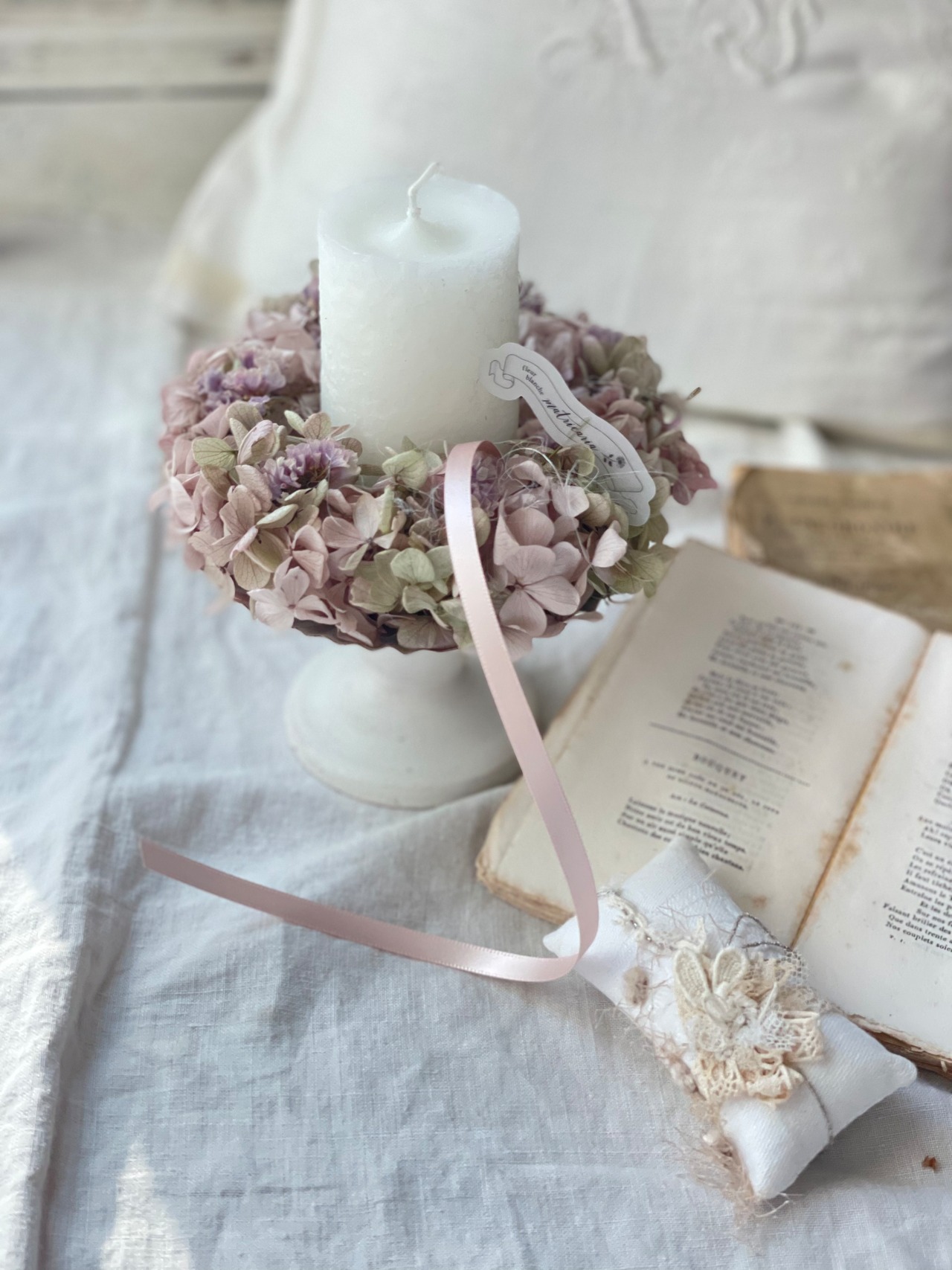 ほんのりやさしいあじさいリース〜コンポート&キャンドル付き
