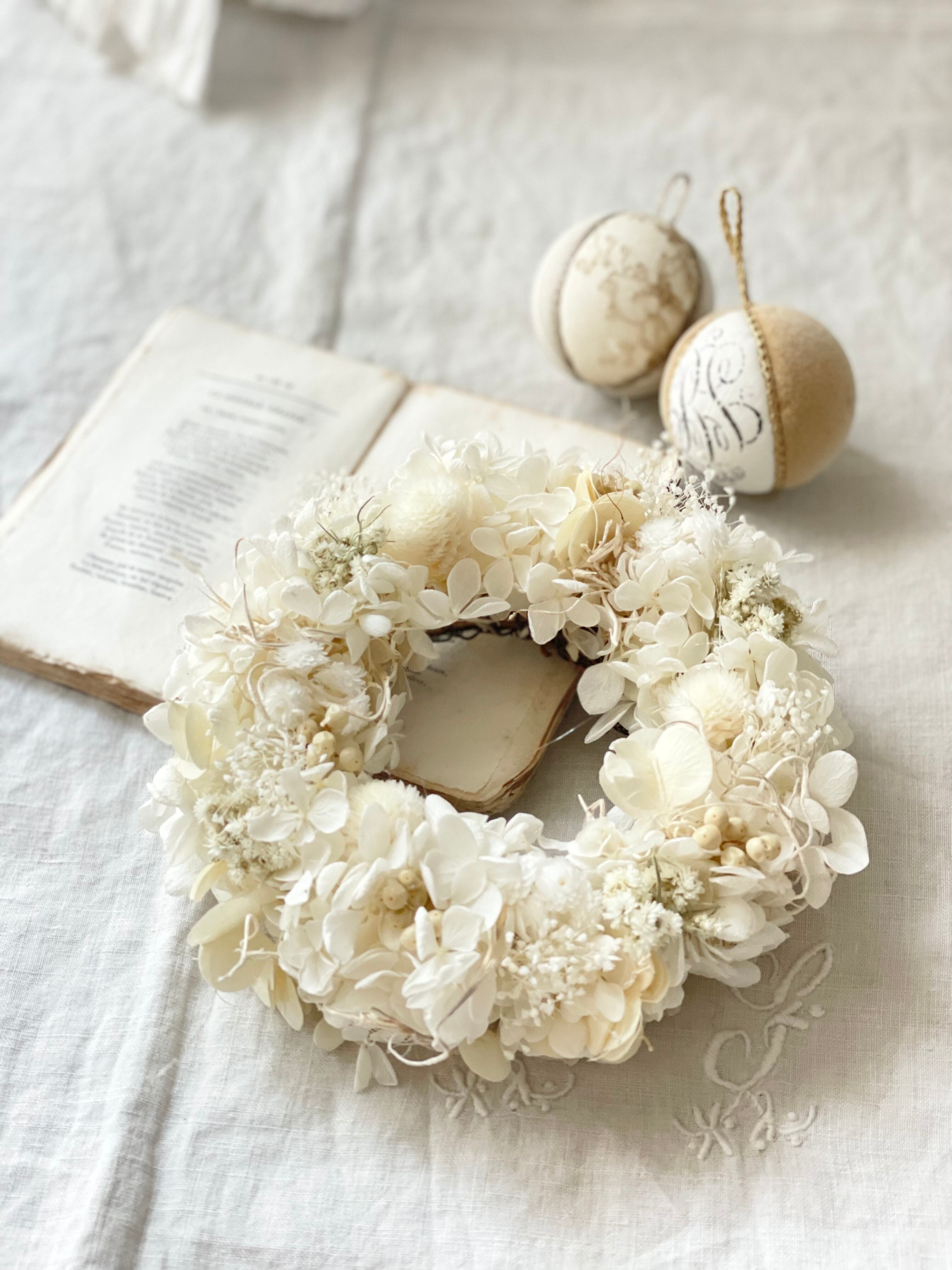 コンポートに真白(ecruカラー)リースを合わせました。