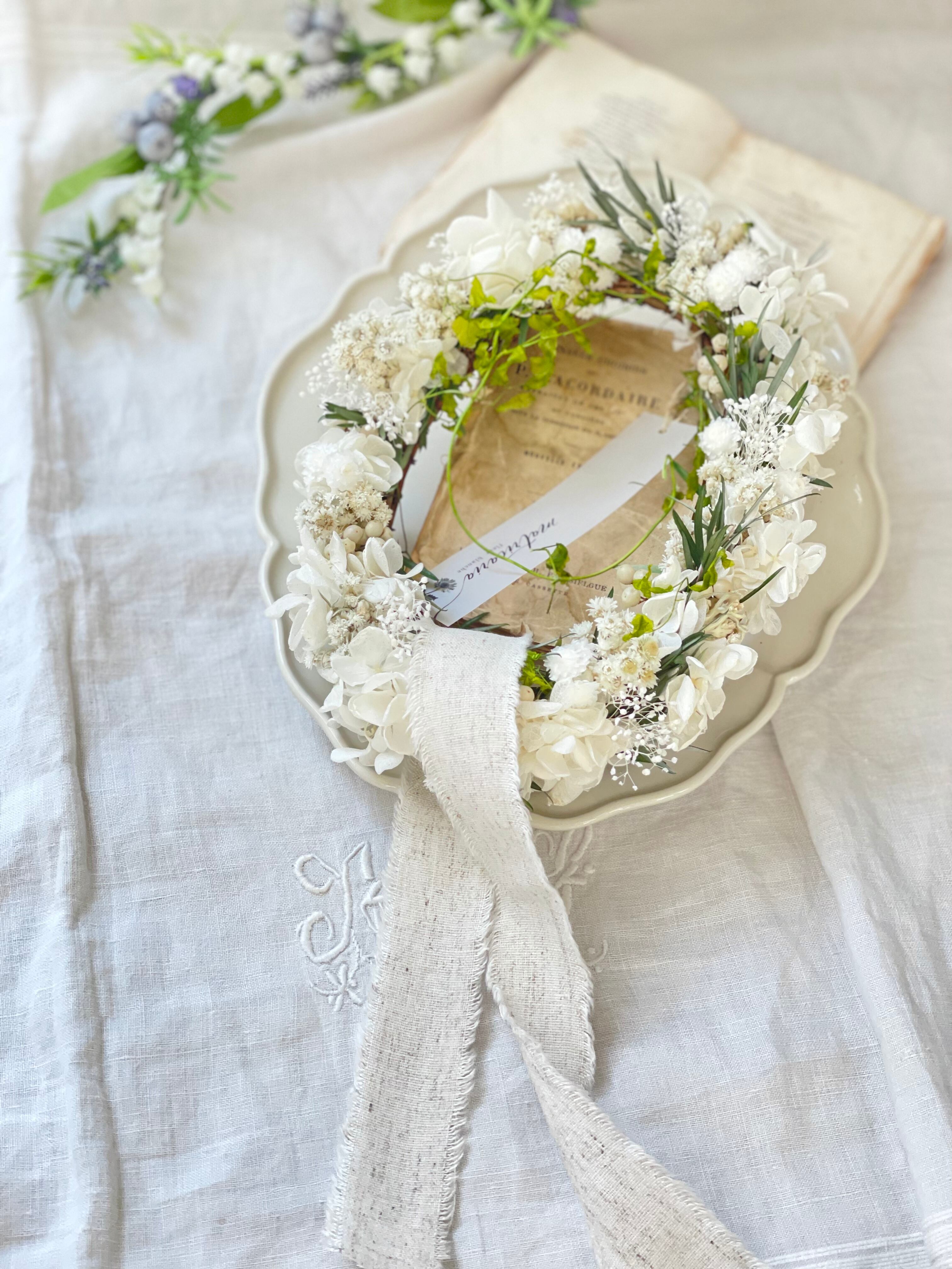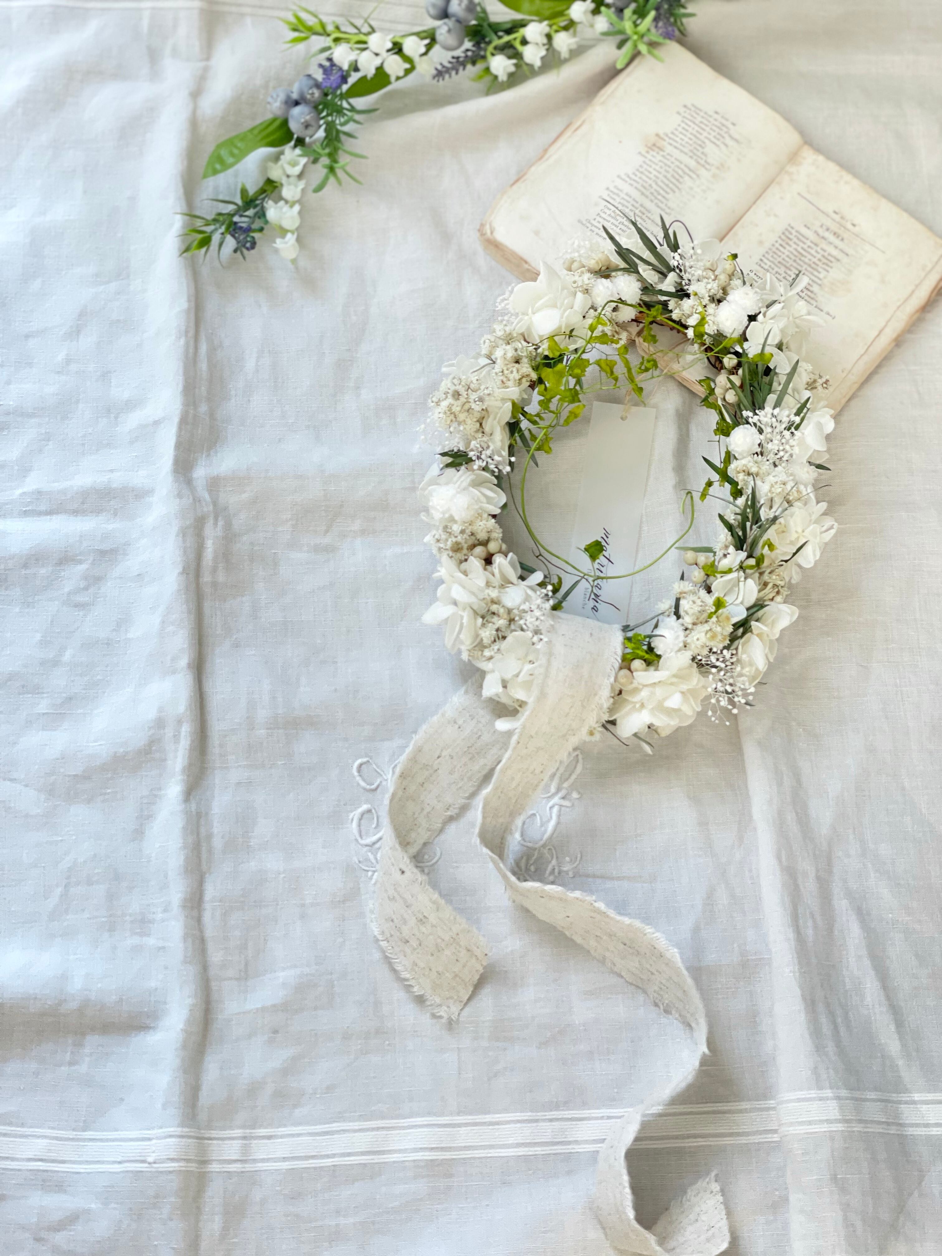 ハハコ草とあじさい&ティーツリーのオーバルリース