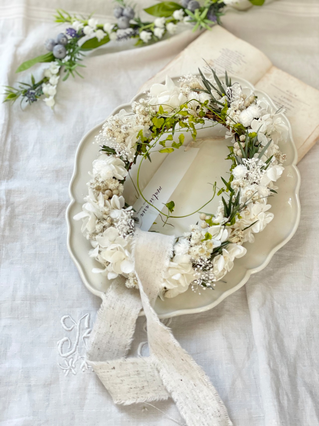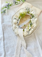 ハハコ草とあじさいでナチュラルに仕上げました。