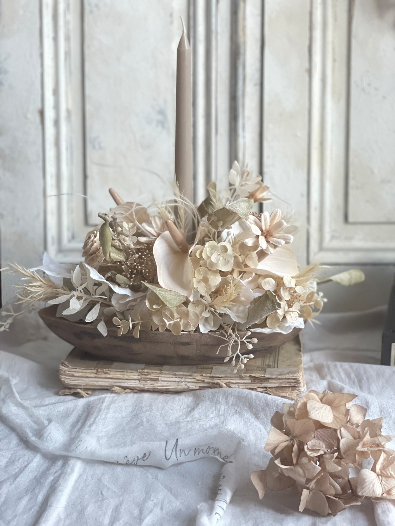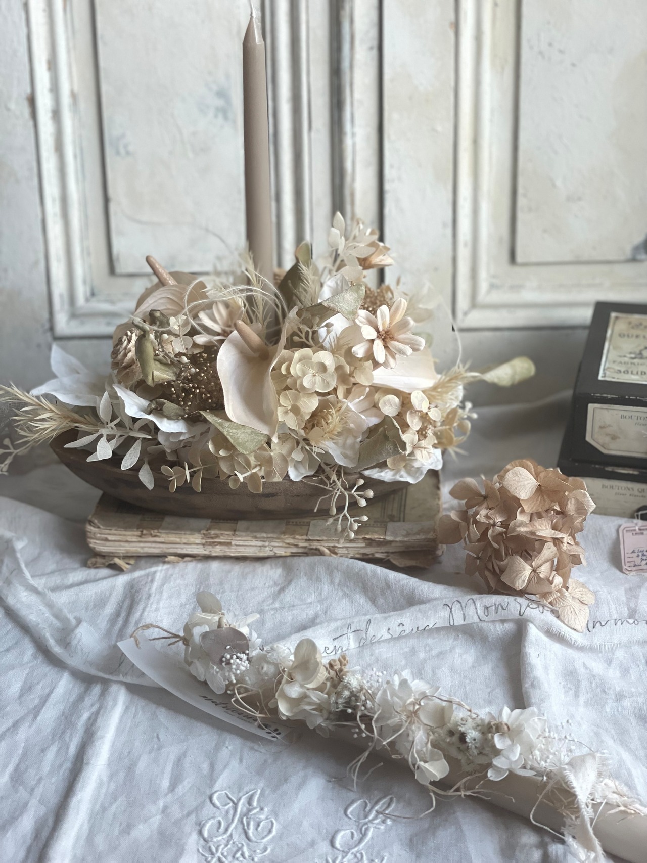 ★送料込み★セピア色キャンドルアレンジ〜古材風トレー
