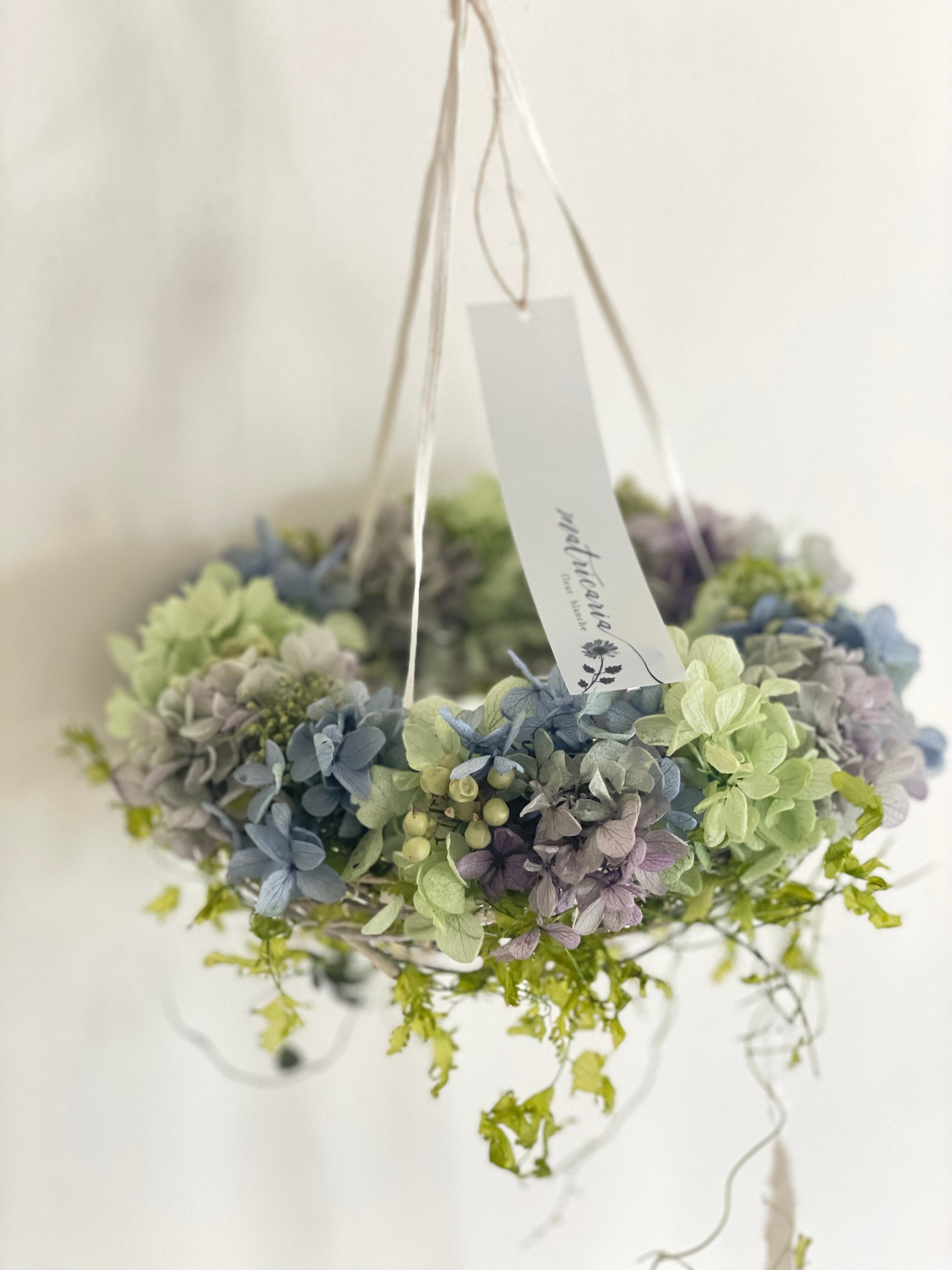 あじさいと蔦を楽しむゆらゆらリース