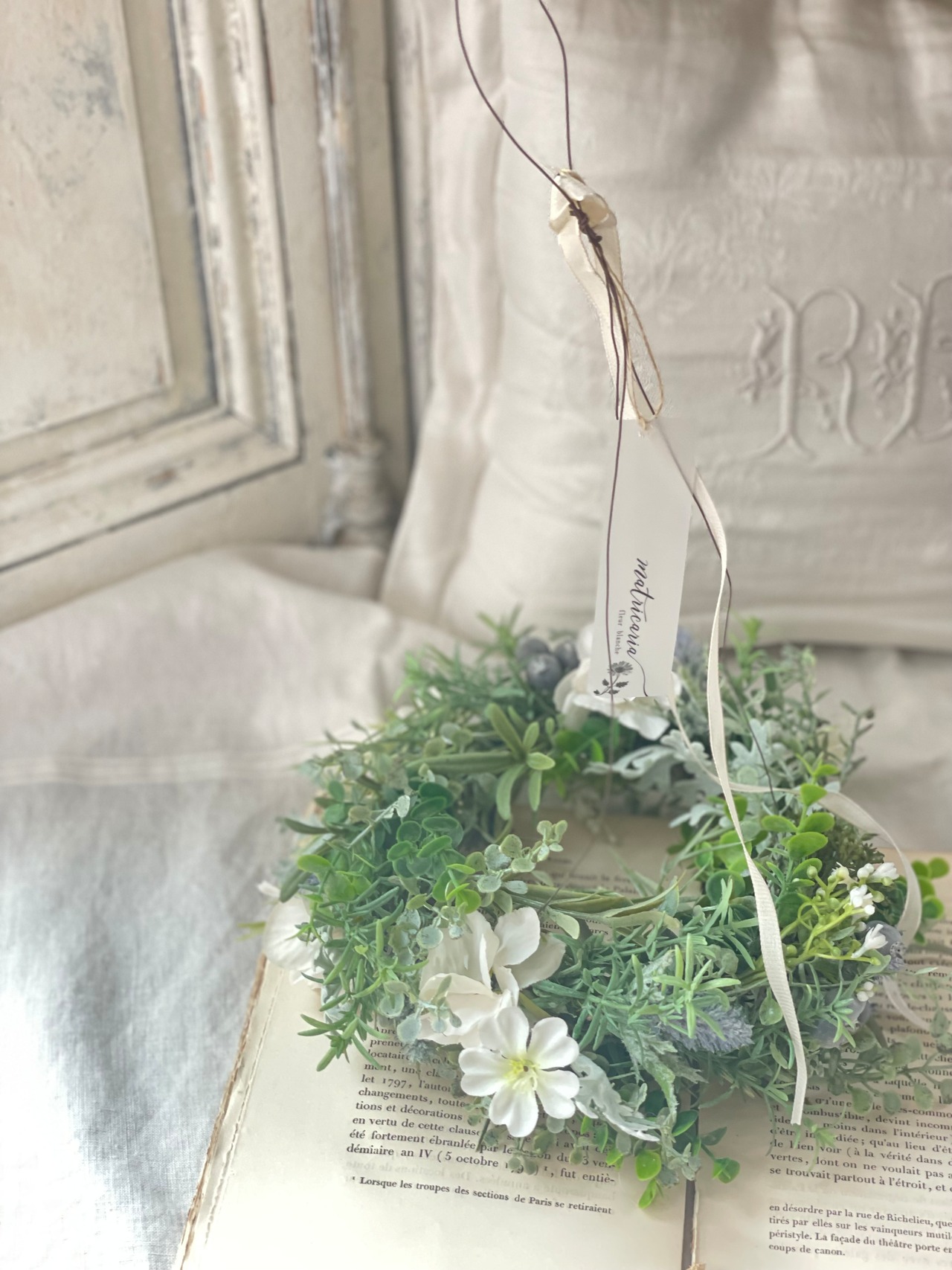 白いアンティークリボンを添えました☺︎
