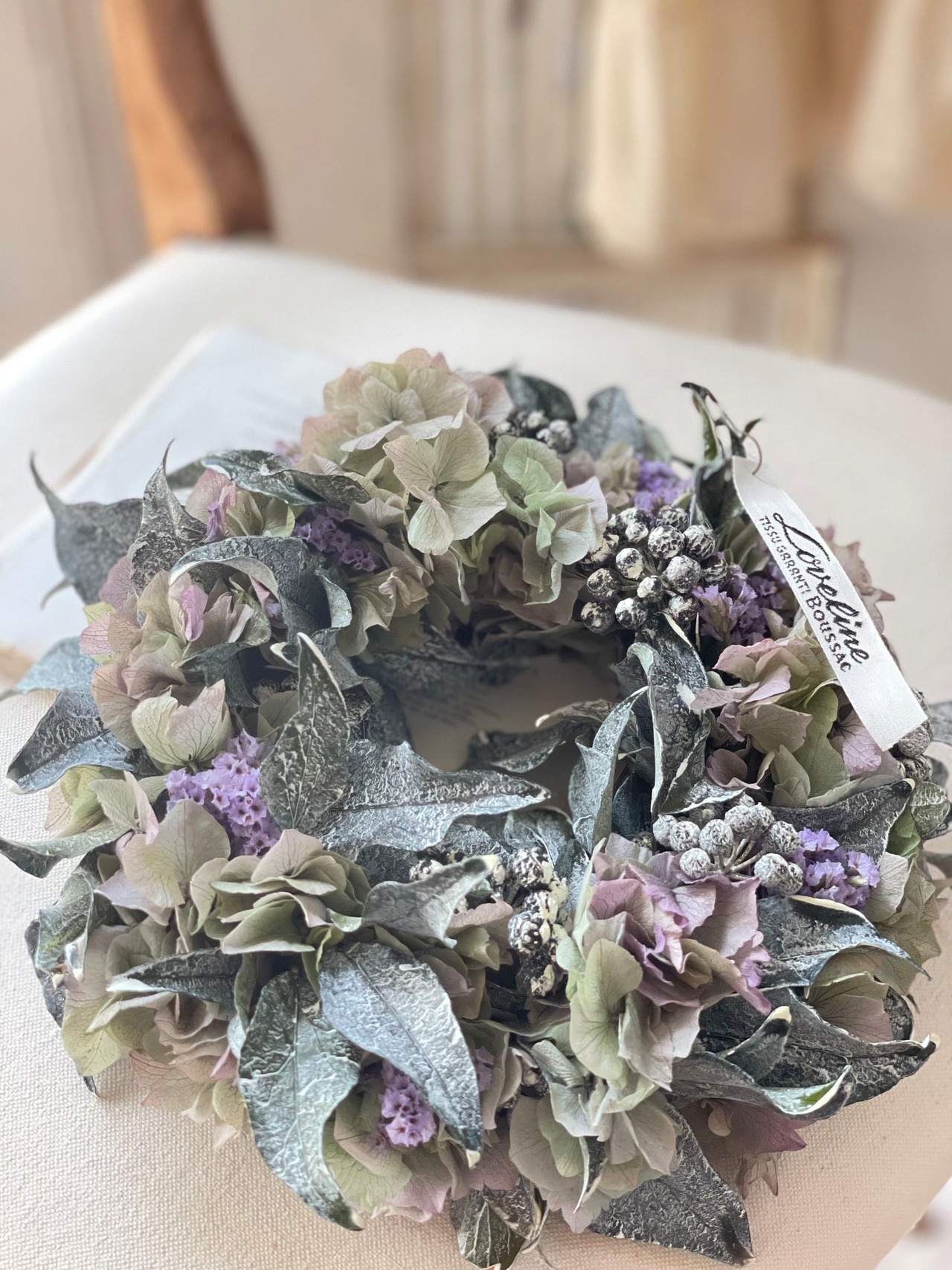 実付きアイビーとあじさいのシャビーなキャンドルリース