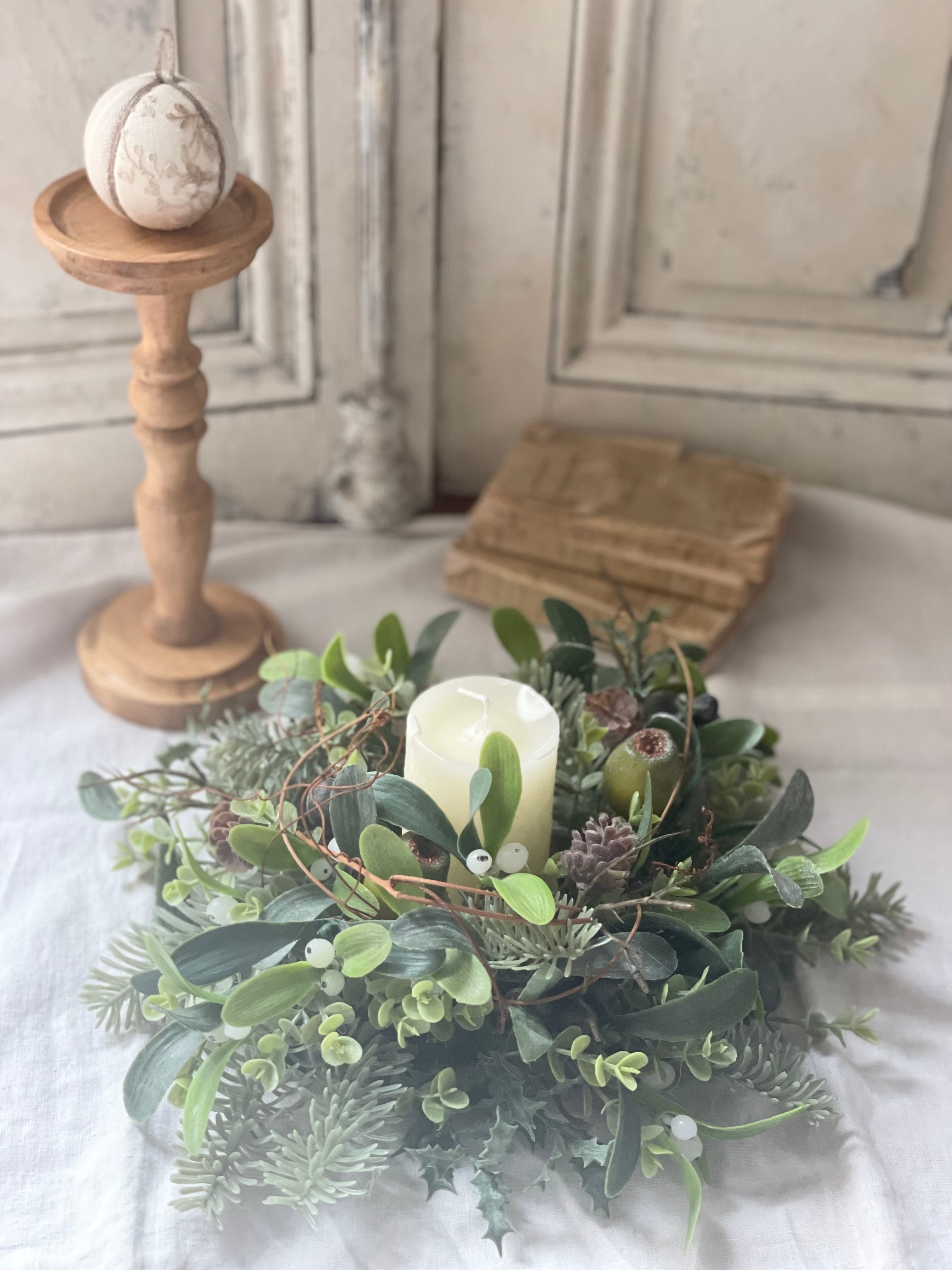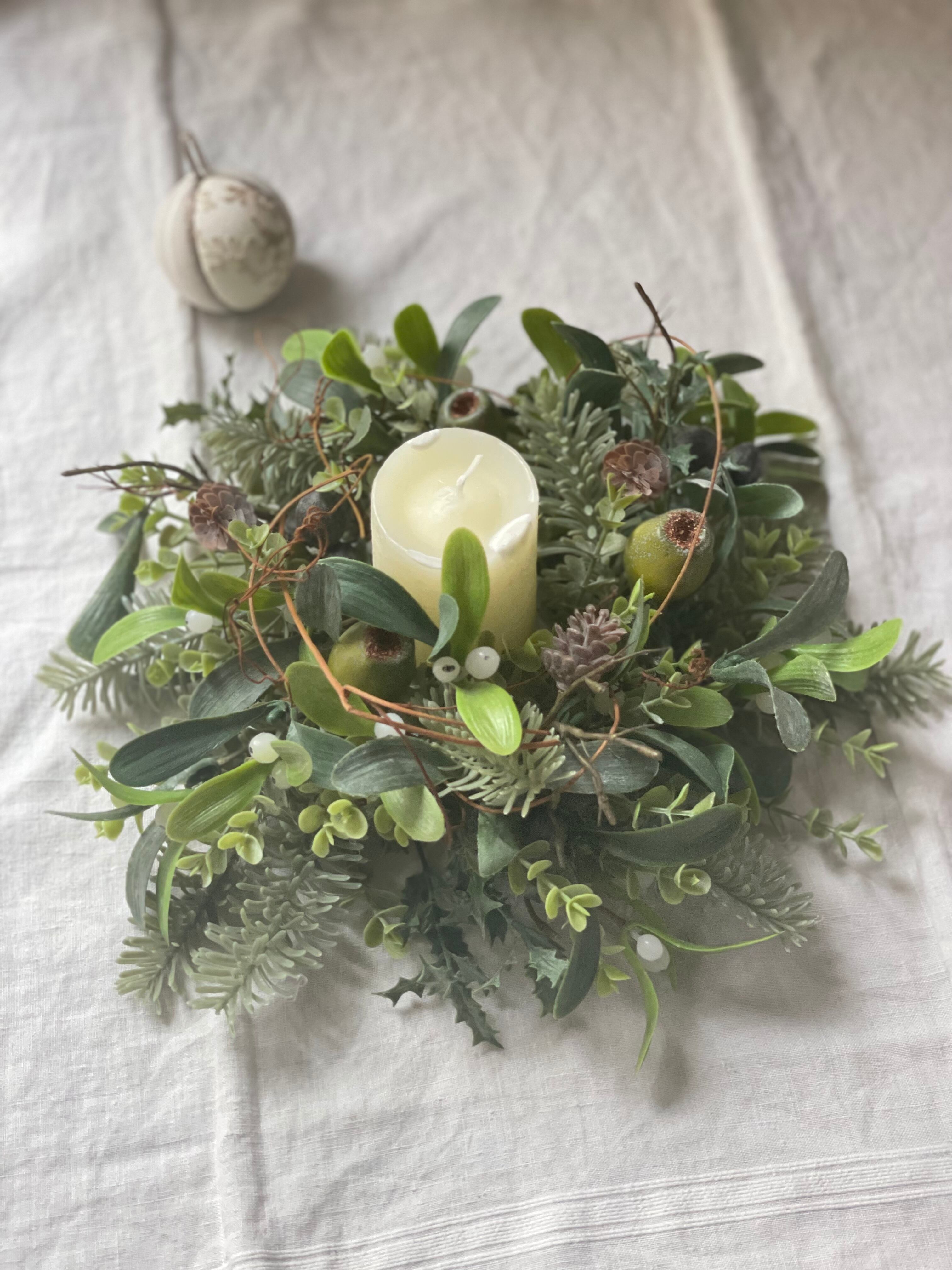 ▪︎Yさま専用ページです▪︎ヤドリギとリーフのNoëlリース〜キャンドルスタンド&キャンドル付き〜