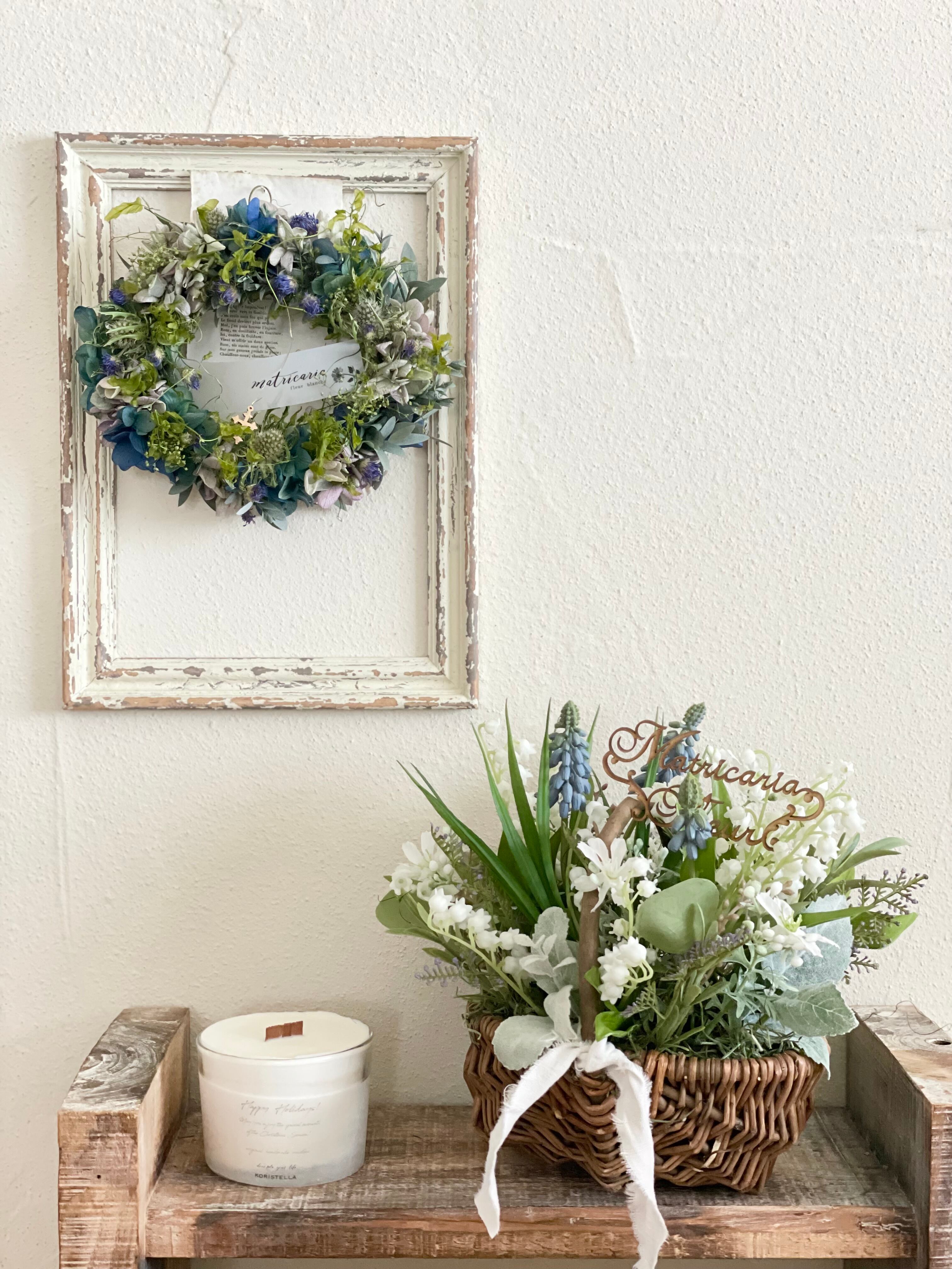 すずらんとムスカリのバスケットアレンジ〜オリジナルピック付き〜