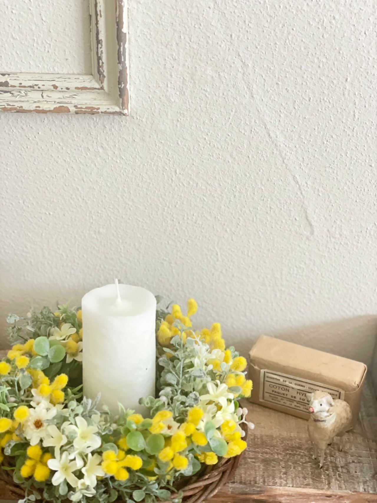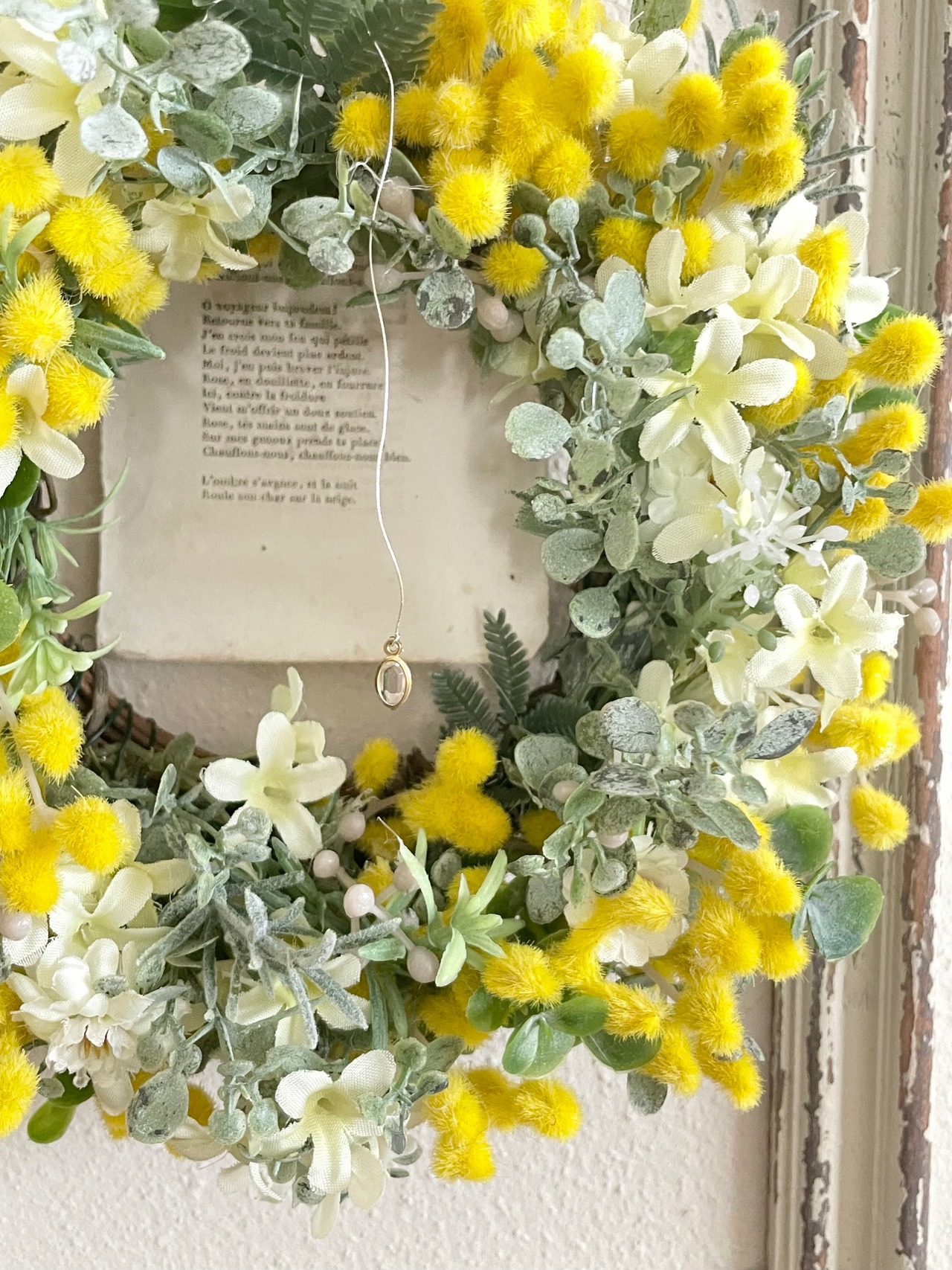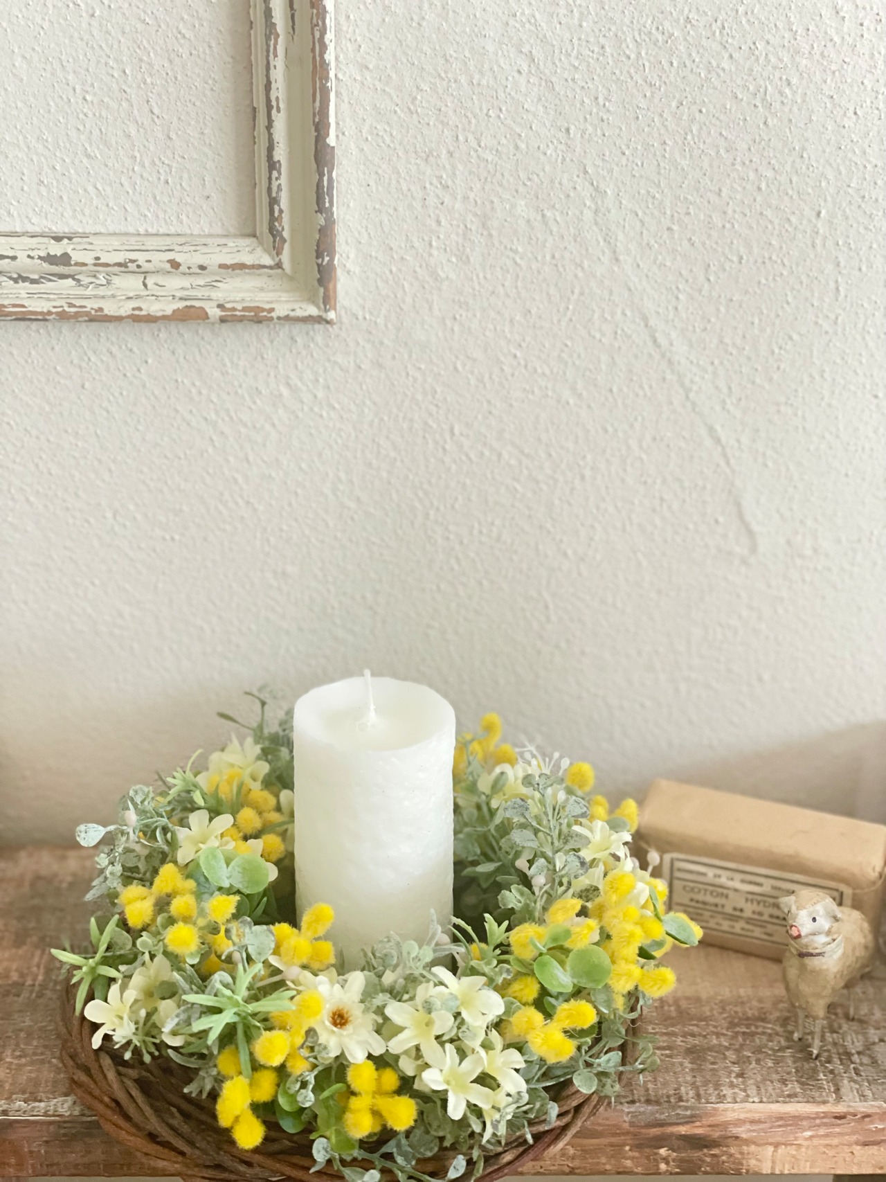 ミモザとユーカリの春色リース〜ガラスチャーム&キャンドル付き〜