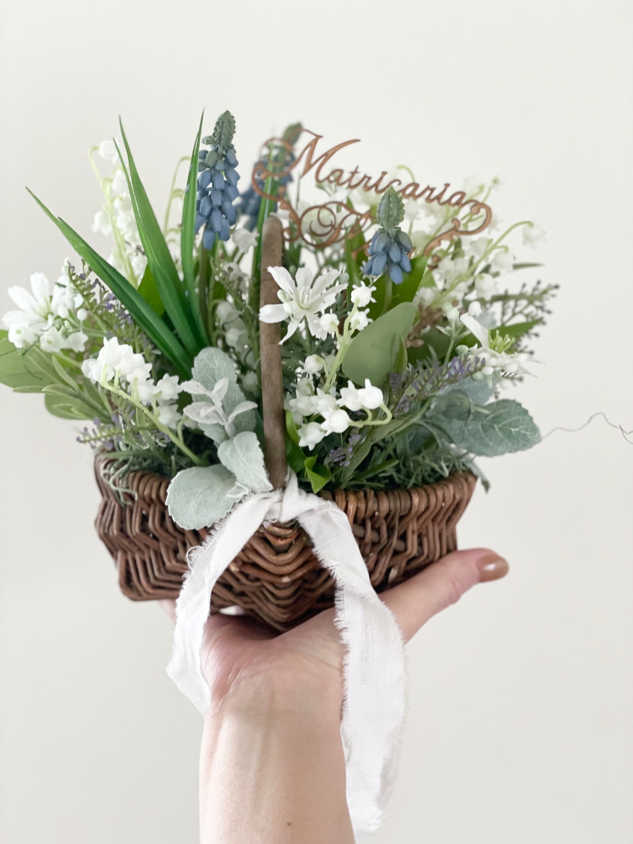 ◾️受注制作◾️すずらんとムスカリのバスケットアレンジ〜オリジナルピック付き〜#2
