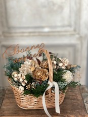 可愛いバスケットに冬のアレンジを。