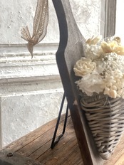 アンティークアクセサリーパーツを金糸でぶら下げたものなどもアレンジしました。