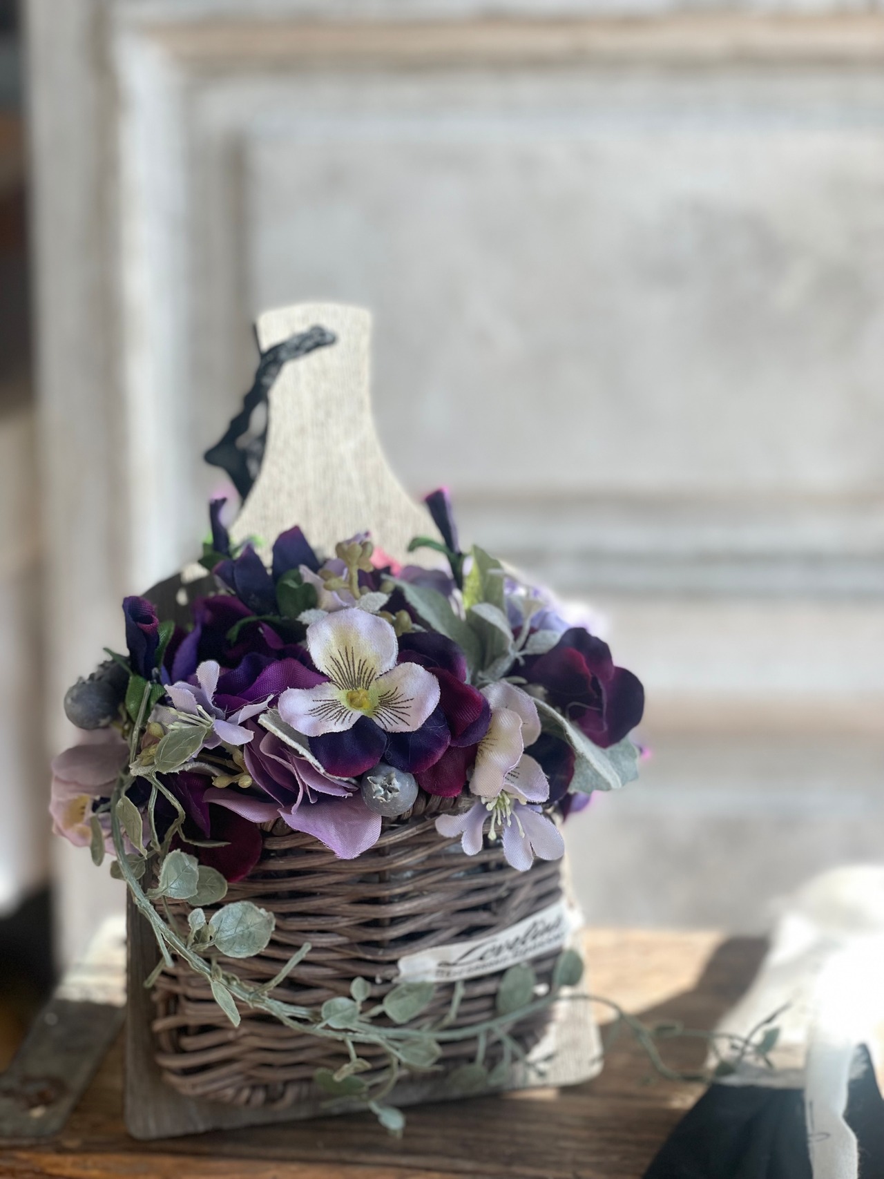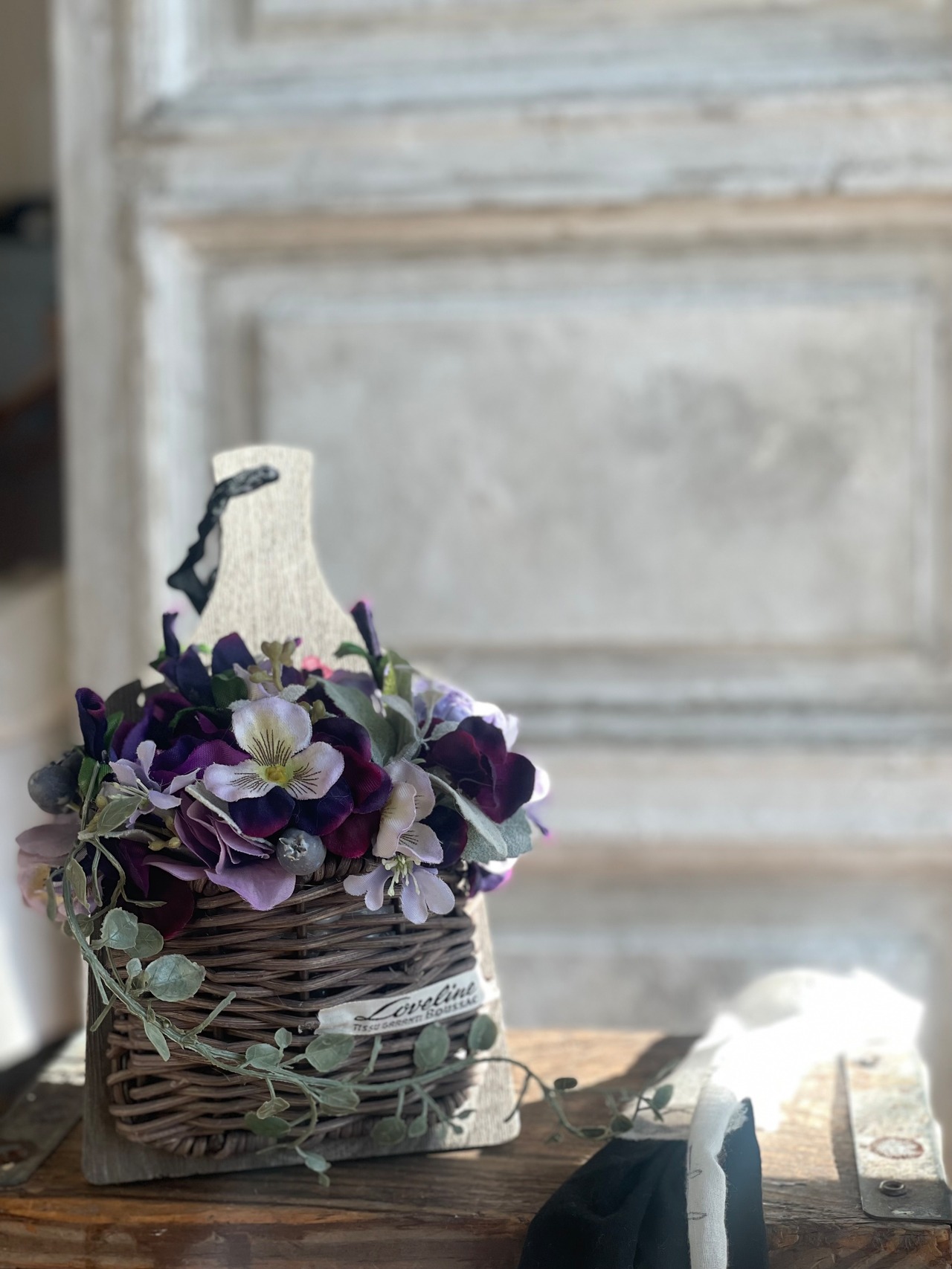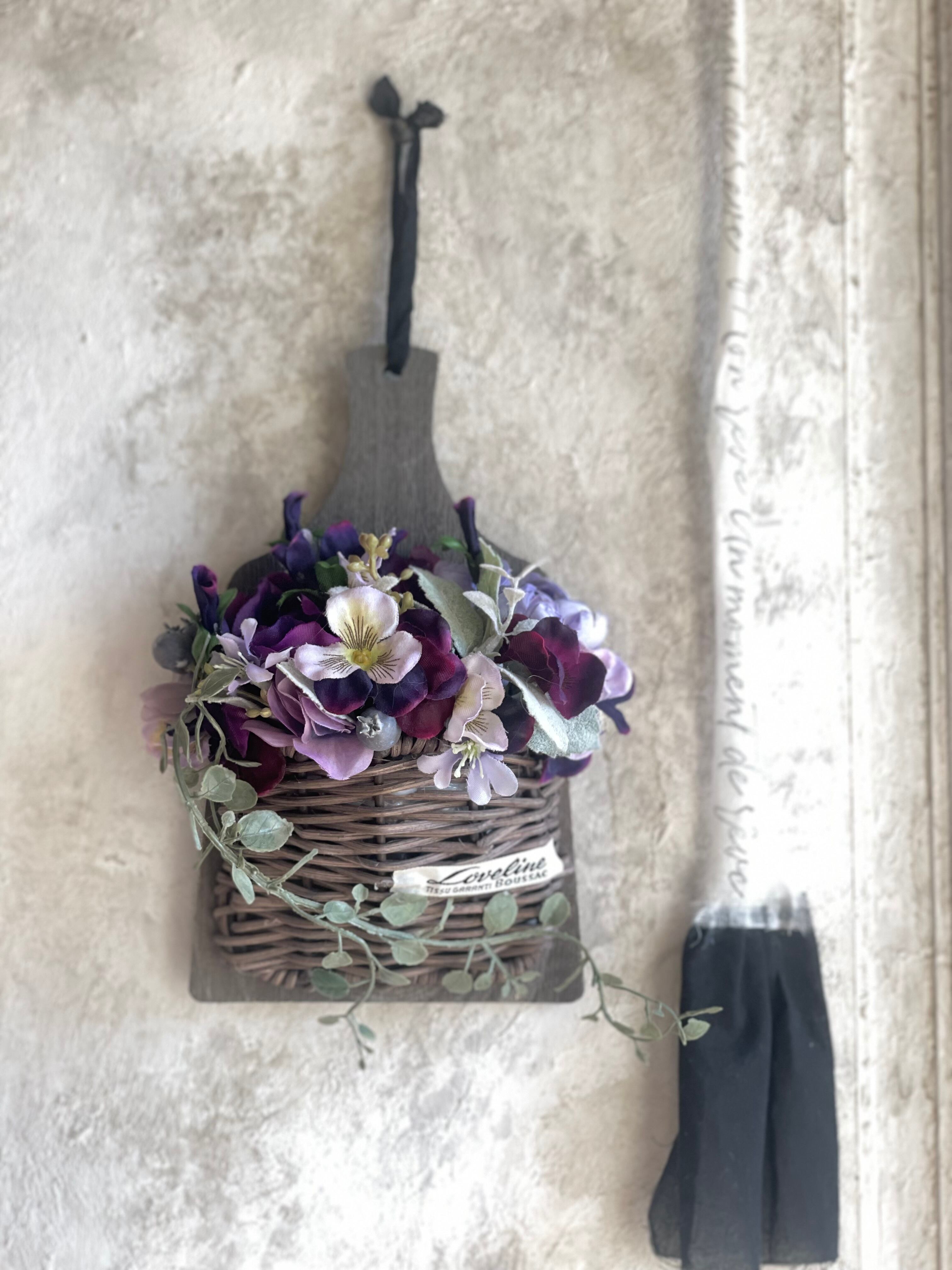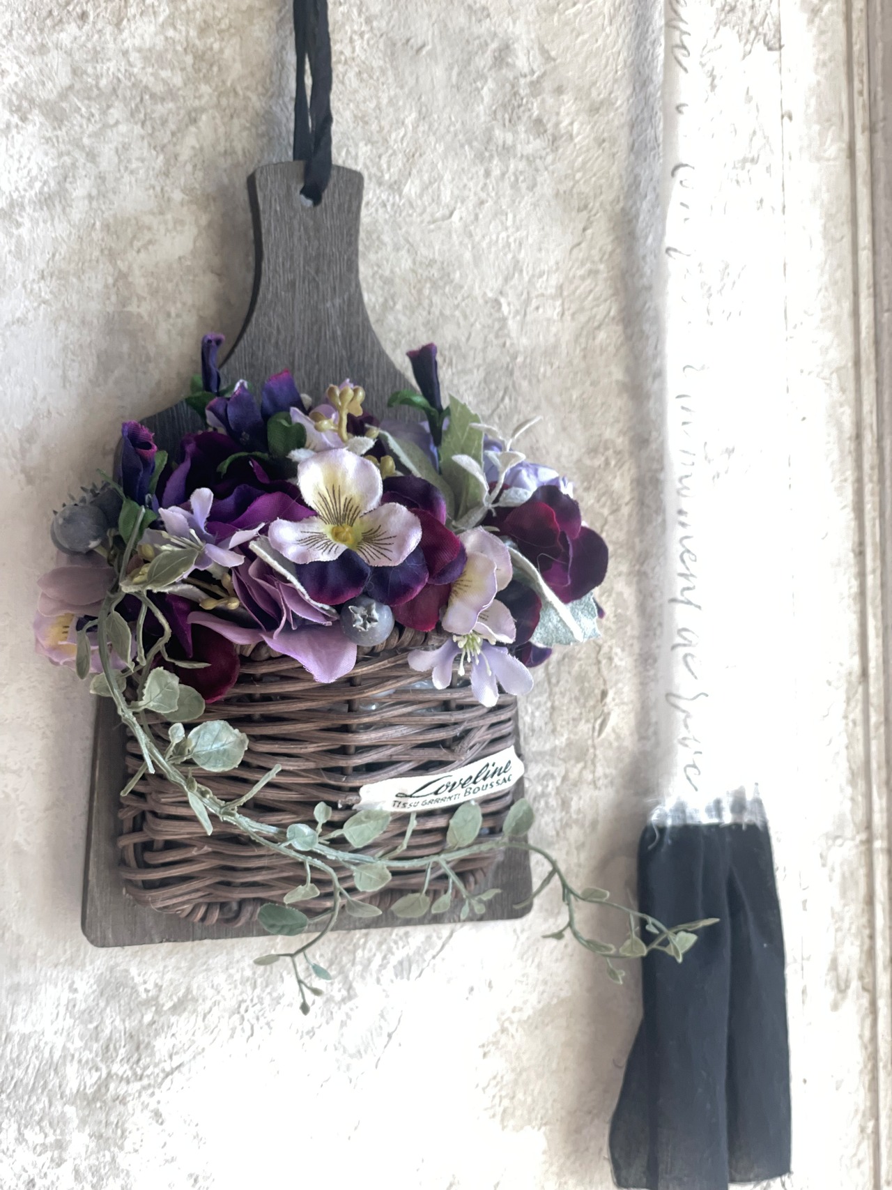 アンティークアクセサリーパーツを金糸でぶら下げたものなどもアレンジしました。